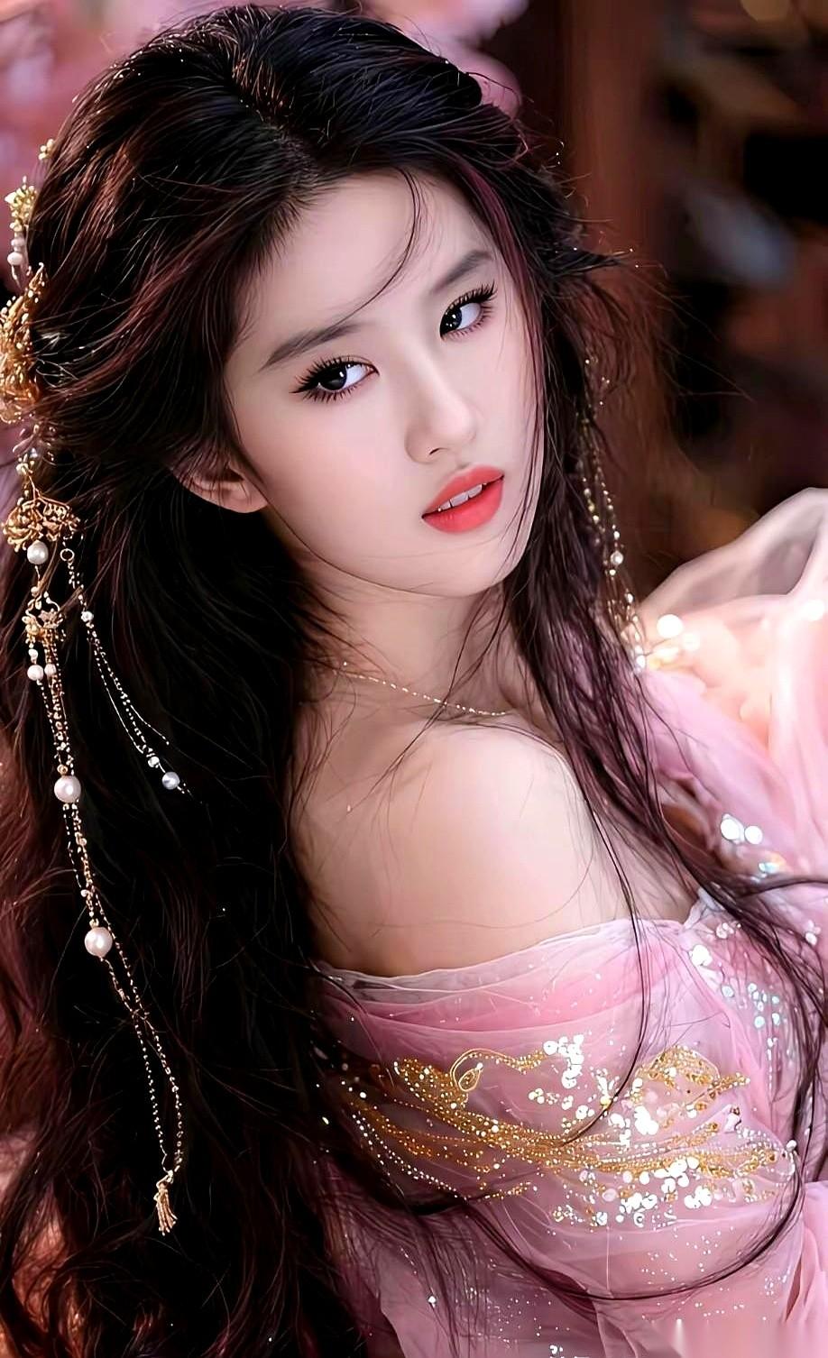 那件带着细闪的柔纱睡裙顺着肩膀滑下,边缘透着光,细碎的珠链在颈间轻轻晃动,光影顺着锁骨的线条铺开,整个画面像被笼了一层淡粉色的雾气。