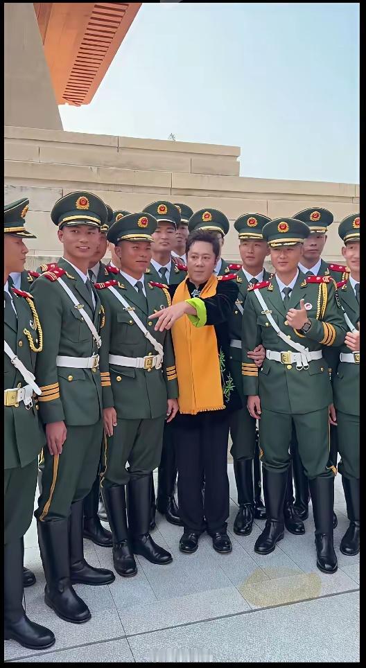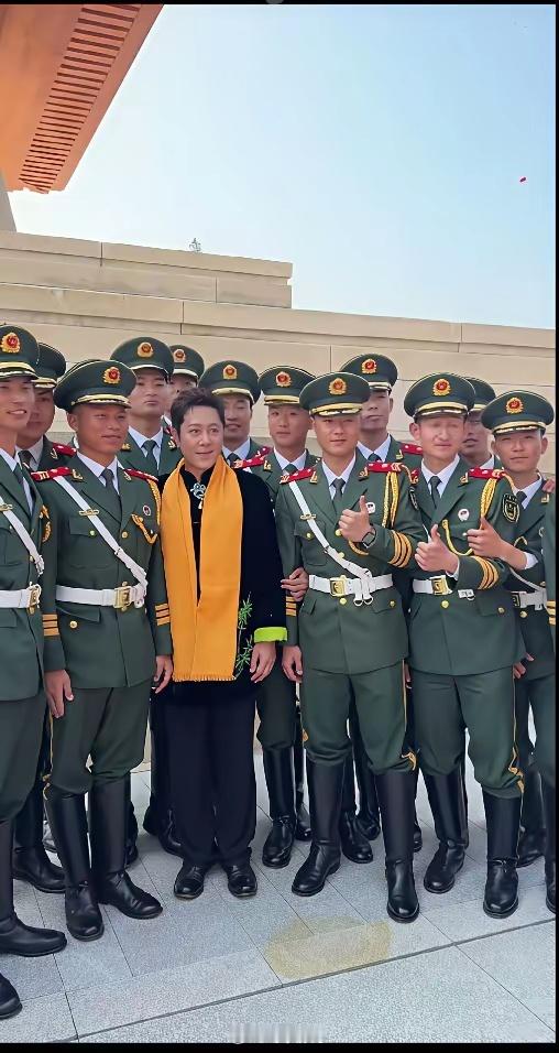 看到自己的偶像,武警战士们非常激动,纷纷围拢过来与蔡国庆老师合影留念。当年我当兵