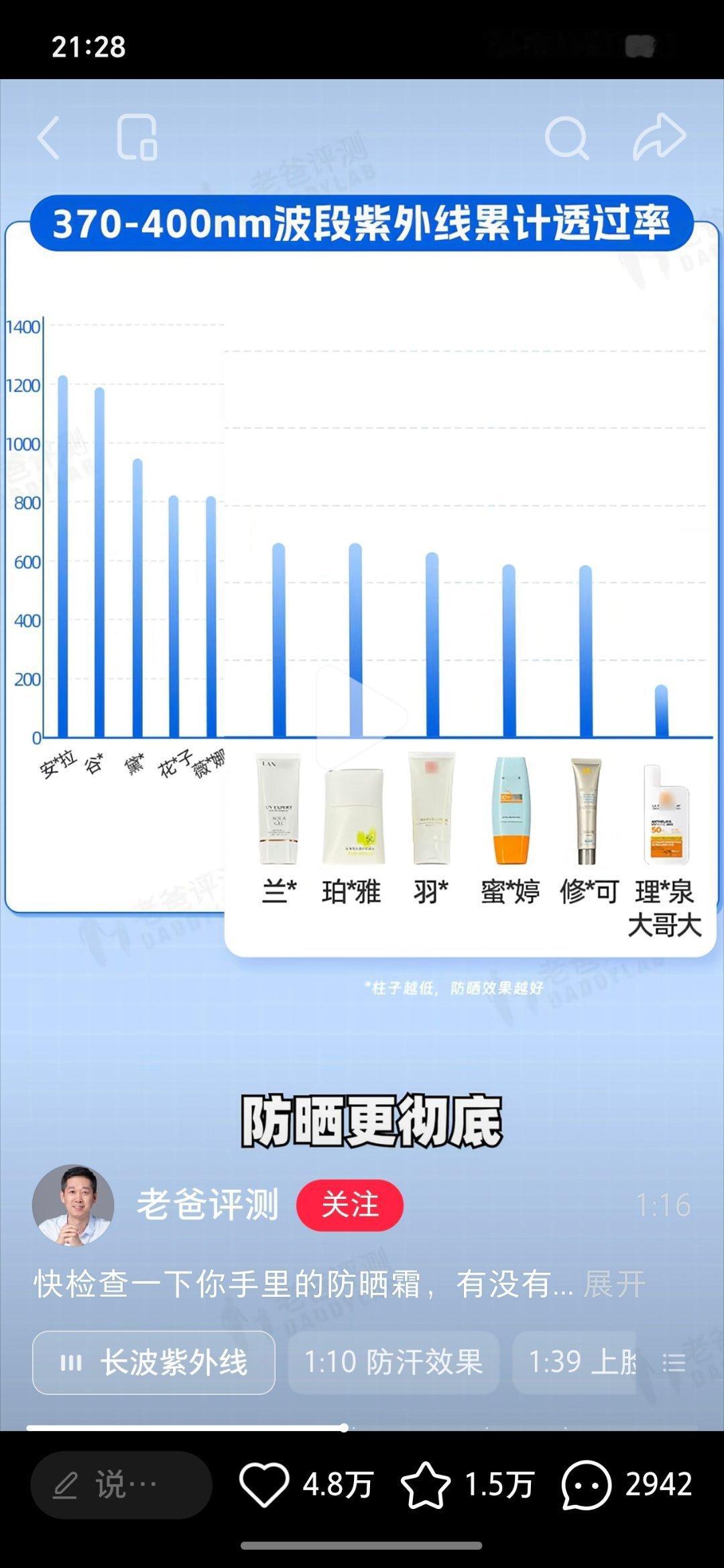 看老爸测评的防晒霜测评,看完点开郫县开屏就是羽西广告,送了我一张券,最后166拿下110ml,感觉赚麻了这样我就舍得擦身上了,看了防晒才知道有些防晒只防晒红晒蜕皮不防晒黑,很多也不防长波段的紫外线xhs广告可太多了选的我眼花缭乱,感谢那张券哈哈哈