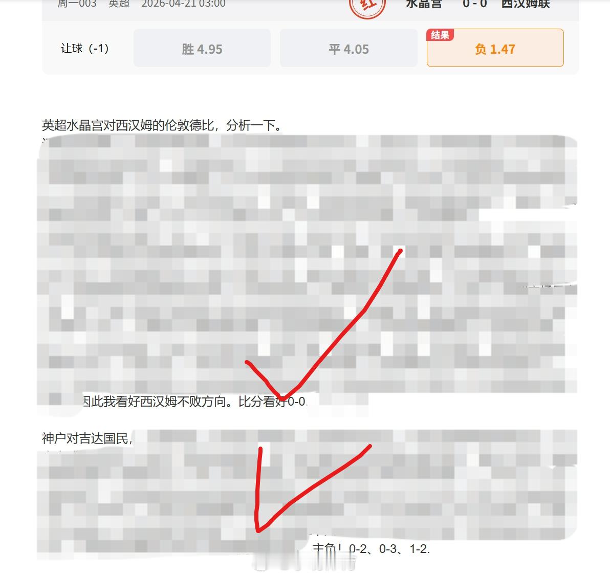 昨4✅️3✅️水晶宫0-0✅️ 神户1-2✅️ 拉瓦勒❌️莱切 五大联赛这里有料