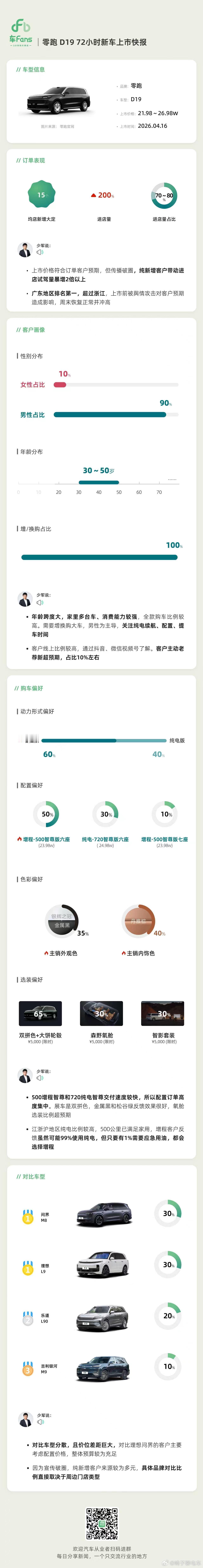零跑D19 72小时战报 均店大定15台 这成绩感觉不太理想吧,还是双动力形式增