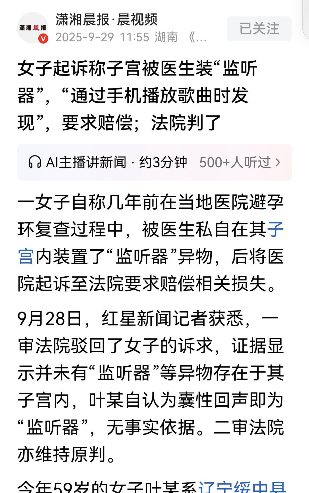 阿姨当场吓出一身冷汗,认定是医生悄悄在她子宫里安了“微型窃听器”,一纸诉状把医院告上法庭。
