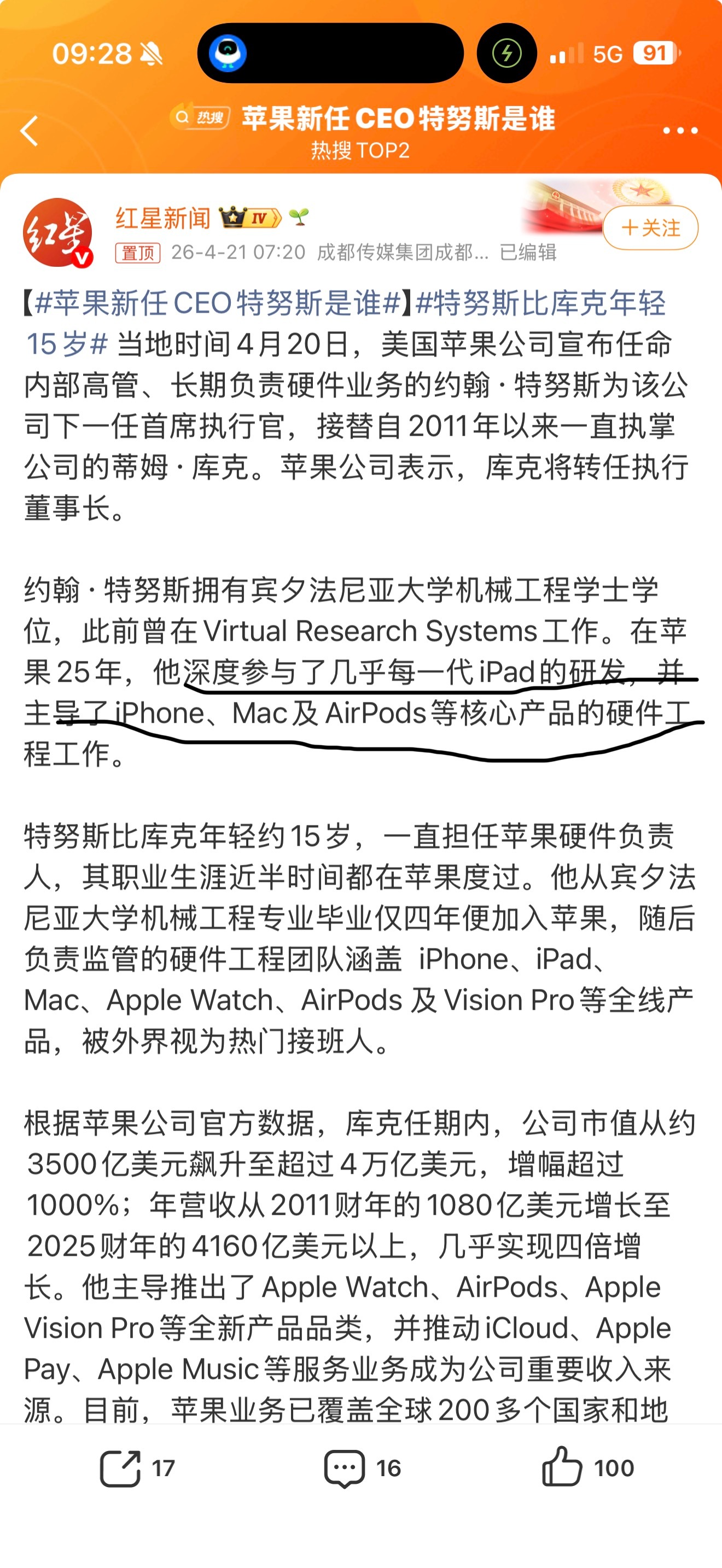 苹果新任CEO特努斯是谁这哥们深度参与了每一代iPad的研发,有没有可能以后在iPad上面投入更大,不过苹果内部应该不允许这种事情发生,就看苹果下一个时代,能不能比库克做的更好。如何评价库克执掌苹果的15年