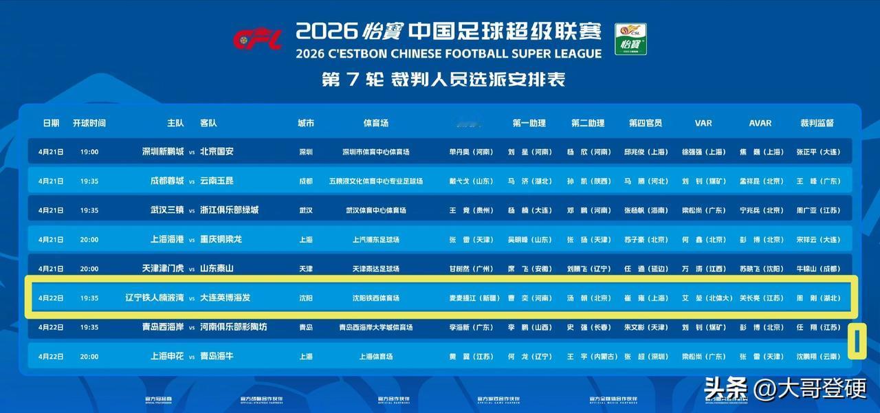 北京时间4月21日上午,中超联赛官方正式公布了2026中超联赛第7轮,裁判选派结果[惊呆]