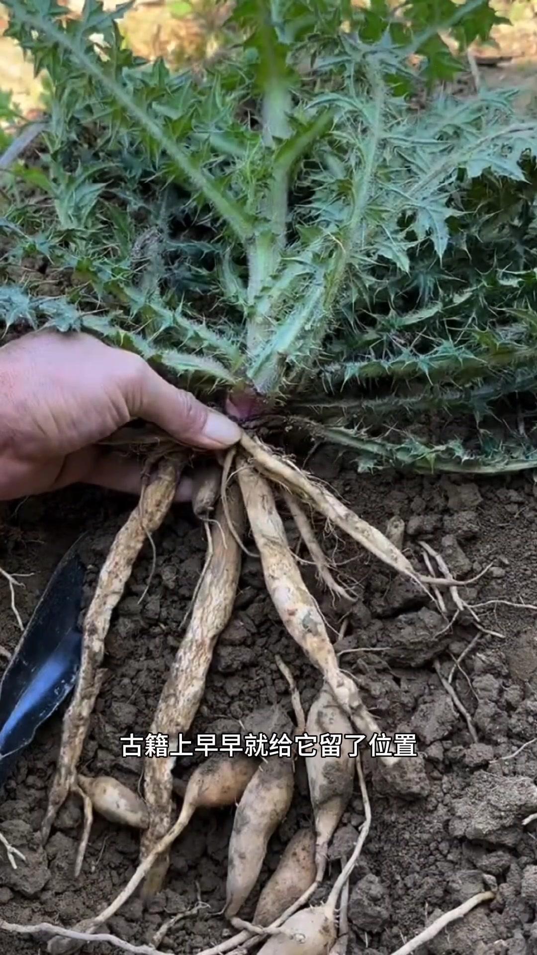 这种植物叫大蓟,土名寺窗草,我们这边现在不多见啦。它地下的根长得像小人参,可是个