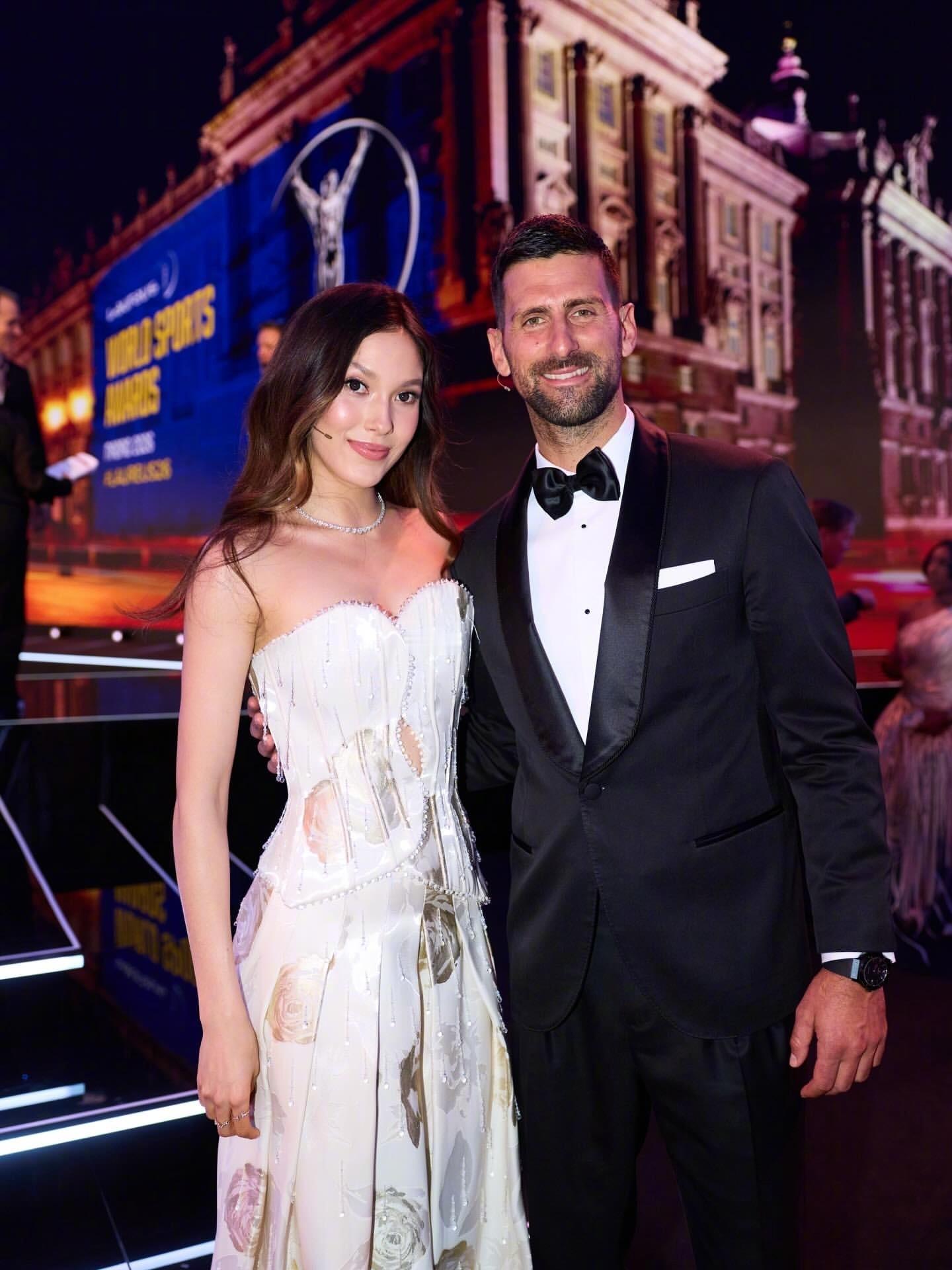 谷爱凌 2026劳伦斯世界体育奖盛典,身穿郭培定制礼服亮相,金色玫瑰、水晶珠链... 优雅又华丽,尽显落落大方的美。现场与德约科维奇共同担任主持,和一众世界顶尖运动员汇聚一堂。🌟 谷爱凌劳伦斯红毯造型时尚灵感解读