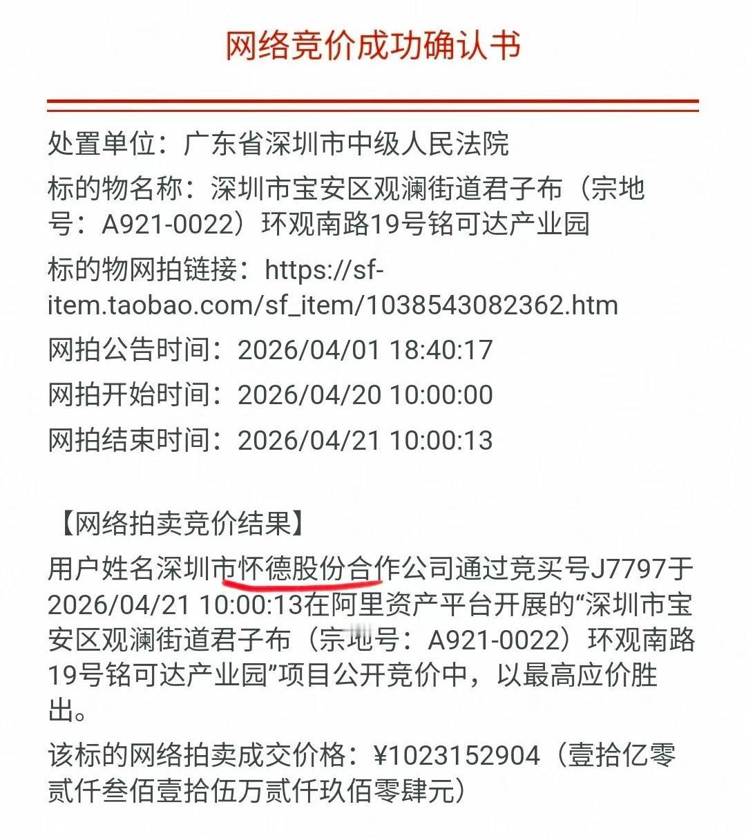 深圳龙华观澜靠近东莞边上的一个工业园被怀德村10亿拿下。在坊间流传的“深圳城中村