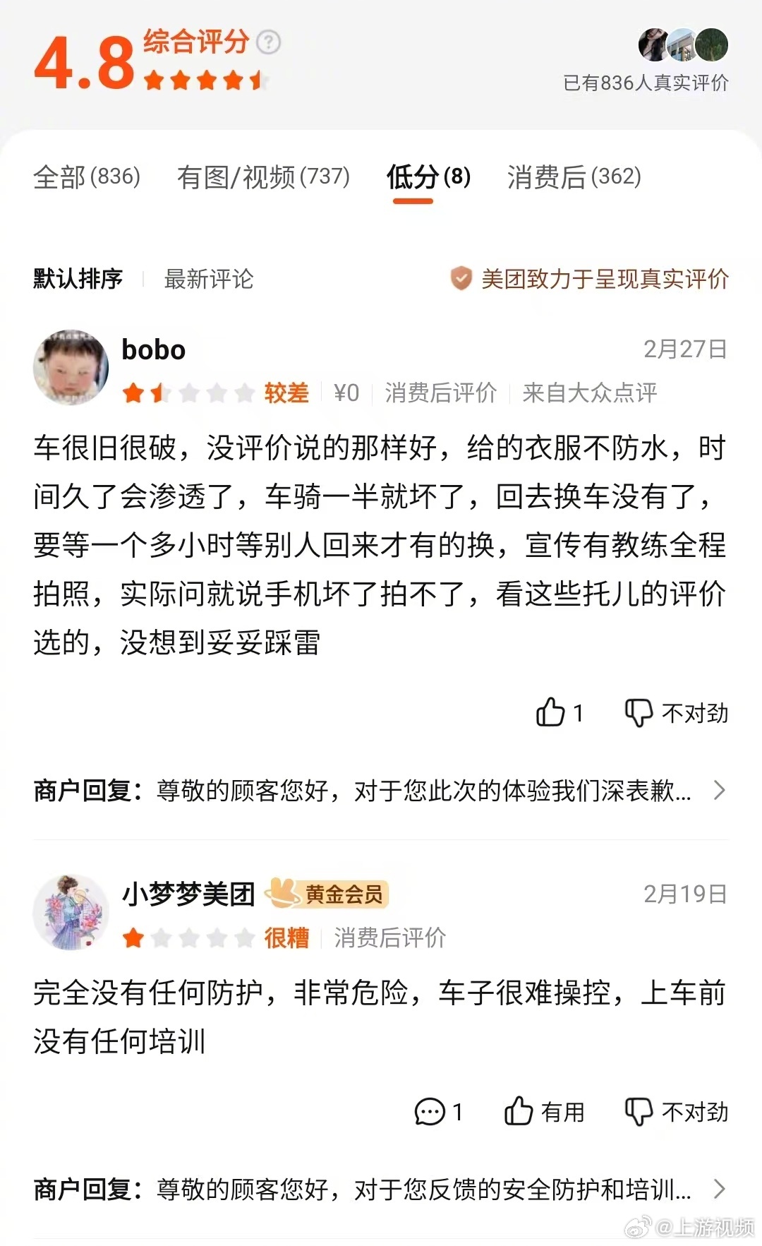 #女子称玩丛林越野刹车失灵坠崖#【女子西双版纳玩越野摔车受伤称刹车失灵,商家否认称其未戴头盔,愿意赔偿】#商家回应女子玩丛林越野坠崖#4月16日,成都胡女士在西双版纳秘境神秘谷越野车基地体验丛林穿越项目时,驾车下坡途中坠崖,致全身多处软组织挫伤、面部受伤。#官方介入女子玩丛林越野坠崖#胡女士称,车辆存在刹车失灵问题,商家提供的头盔无法扣紧且无3C认证,危险路段无警示标识与安全员。坠崖后她呼救才被教练发现,商家送医后便要求其自行报保险,态度消极。经多部门介入,商家提出赔偿1万元,胡女士认为不足以覆盖后续祛疤修复费用,未同意。商家则否认刹车失灵,称车辆每日均有检查,事故系胡女士下坡仅捏一个刹车、未佩戴头盔所致,事发后已第一时间送医,愿凭医疗票据承担合理赔偿,因胡女士诉求过高未能达成一致。记者查询发现,该基地此前也曾发生游客受伤事故,有游客吐槽车辆老旧、防护缺失、缺乏安全培训。目前,景洪市教体局、文旅局、市监局已介入协调,因双方赔偿金额未谈拢,建议胡女士通过法律途径维权。涉事基地安全是否合规、车辆是否存在故障,相关部门表示需发函方可进一步回应。(上游新闻记者李文滔)