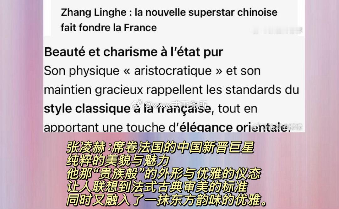 《法兰西西部报》,为张凌赫专门发文设立了专题安利!形容凌赫为【席卷法国的中国新晋