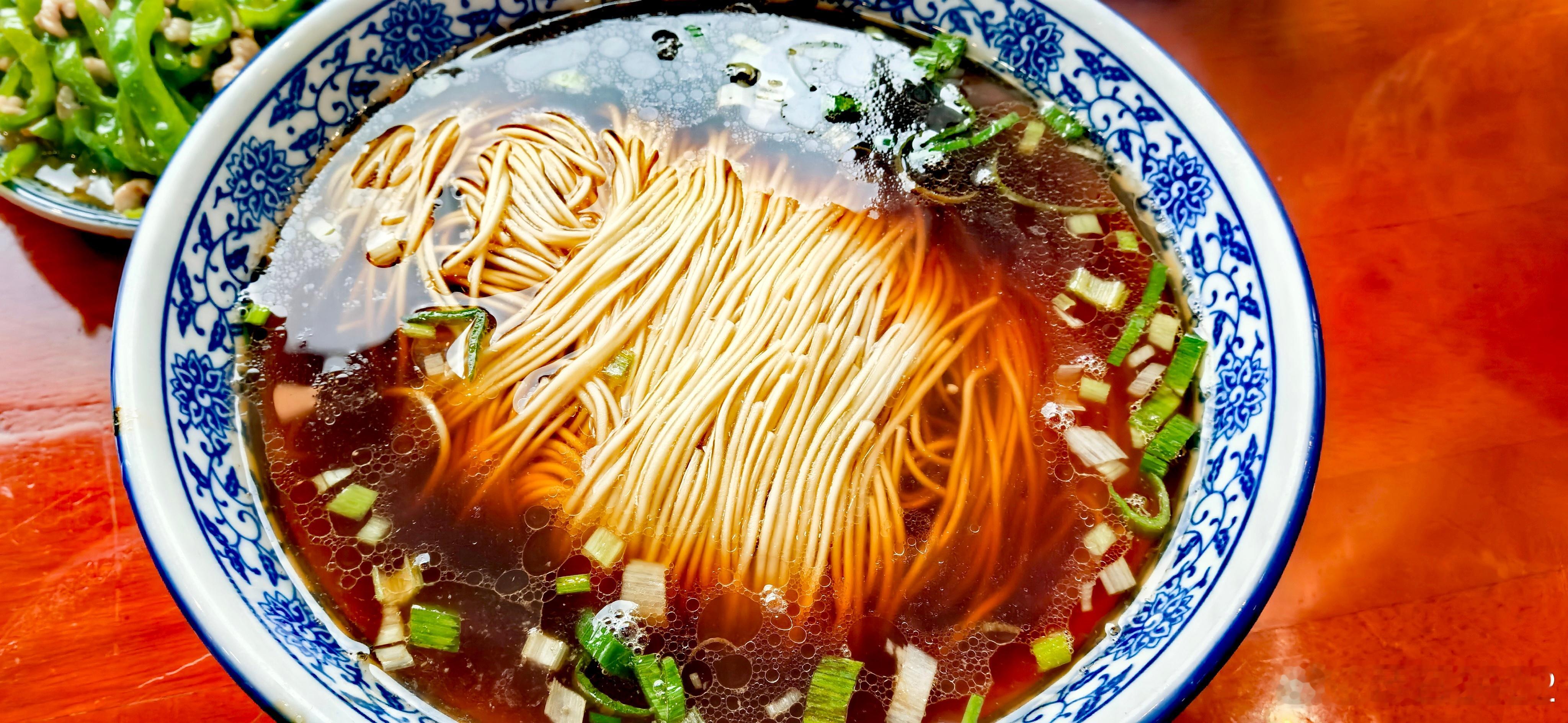 奥灶面我让青椒肉丝里加了一点红尖椒,但少了一点老抽。青椒爽脆很不错,味还行,毕竟