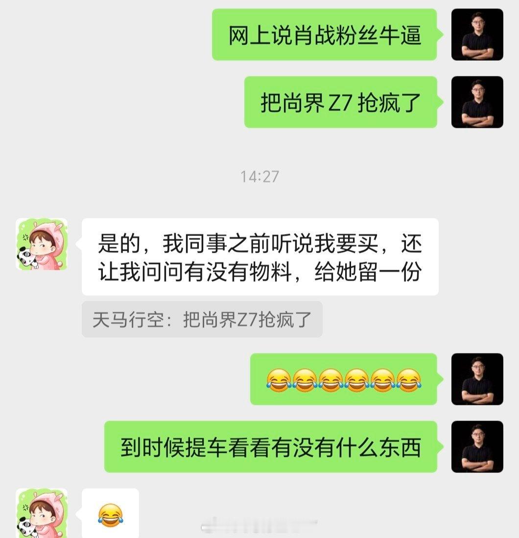 网上说肖战粉丝厉害,排队要提尚界Z7了。。我老婆说同事知道她定了Z7后也在问有没