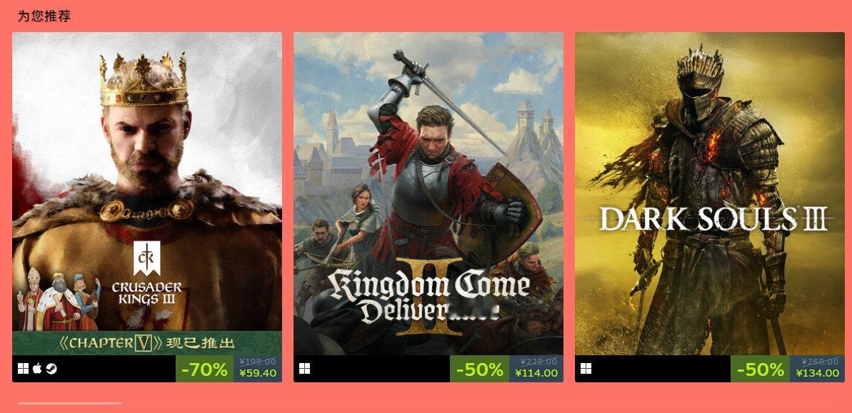 Steam中世纪游戏节开幕,4月28日凌晨截止,各种中世纪题材游戏开启折扣,即将发售的游戏推出试玩版,点数商店上新。《天国拯救2》《黑暗之魂》《骑马与砍杀2:霸主》系列等开启折扣。 Steam中世纪游戏节