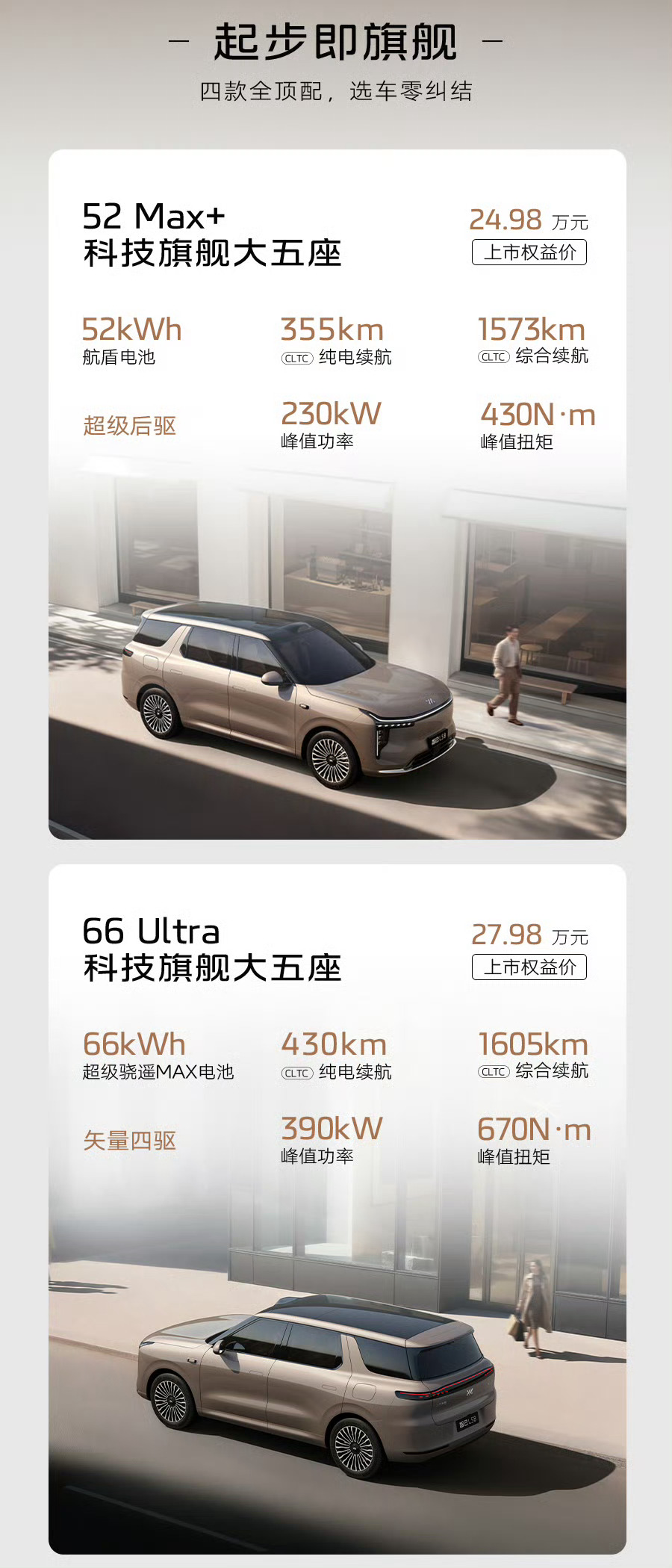 购买时候除了二排屏幕和航空座椅,唯一需要做的选择只有三个维度:根据纯电续航需求选电池版本根据日常通勤场景选驱动形式根据家庭出行人数选大五座或奢享大六座。智己LS8震撼上市24.98万起