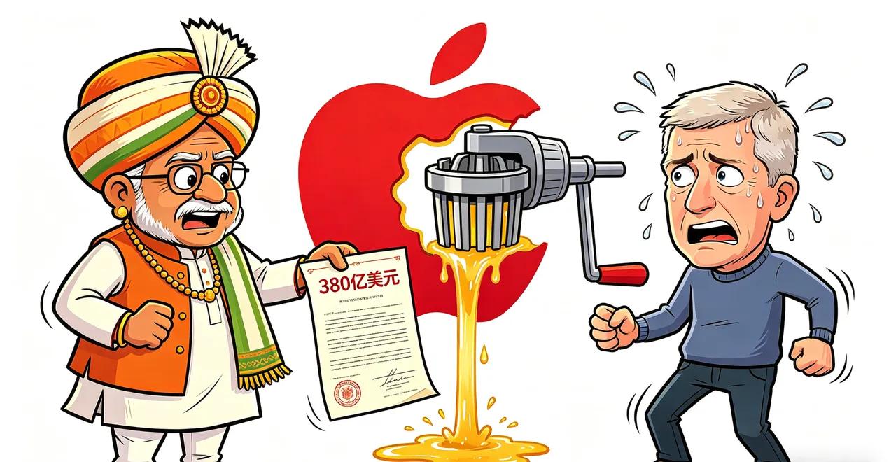 库克这回估计肠子都悔青了。 本想着把产能往印度挪,结果先被人家按在砧板上了。