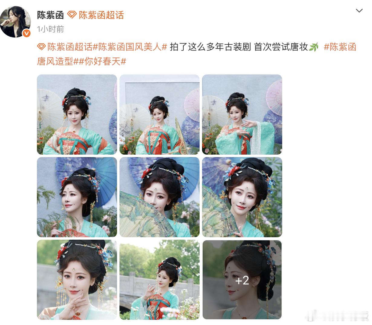 陈紫函首次尝试唐妆陈紫函居然是第一次化唐妆 谁能想到拍了这么多年古装剧,陈紫函居然是第一次尝试唐妆!这唐风造型一出来,活脱脱就是从古画里走出来的盛唐美人,眉眼间的明艳与温婉直接拉满,太有韵味了~