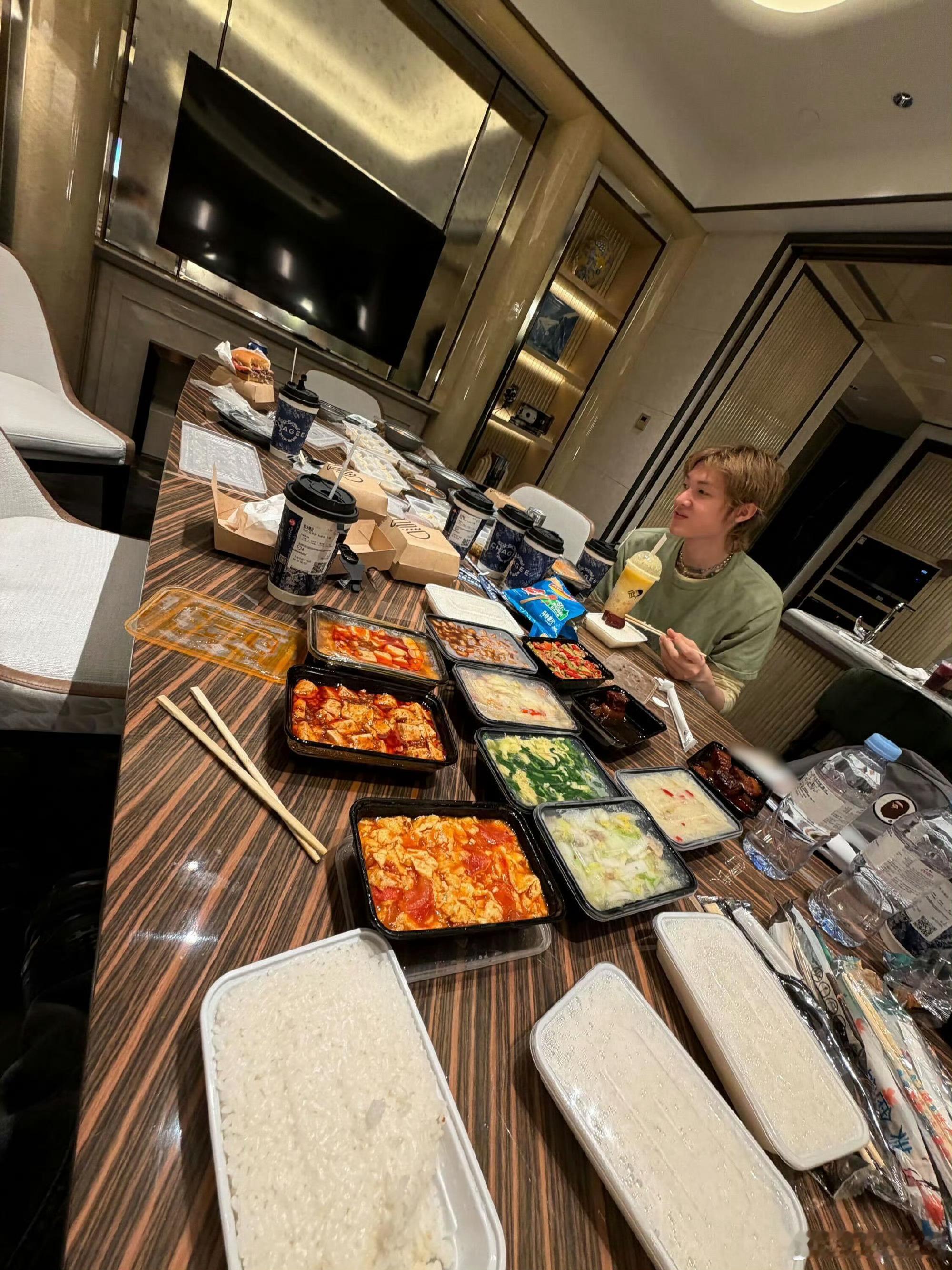 马丁见过人用吸管吗 严成玹社媒更新!结束上海签售的Cortis直接安排满满一桌,真是很会点了!不过这个马丁的吸管是不是插反了哈哈哈哈!
