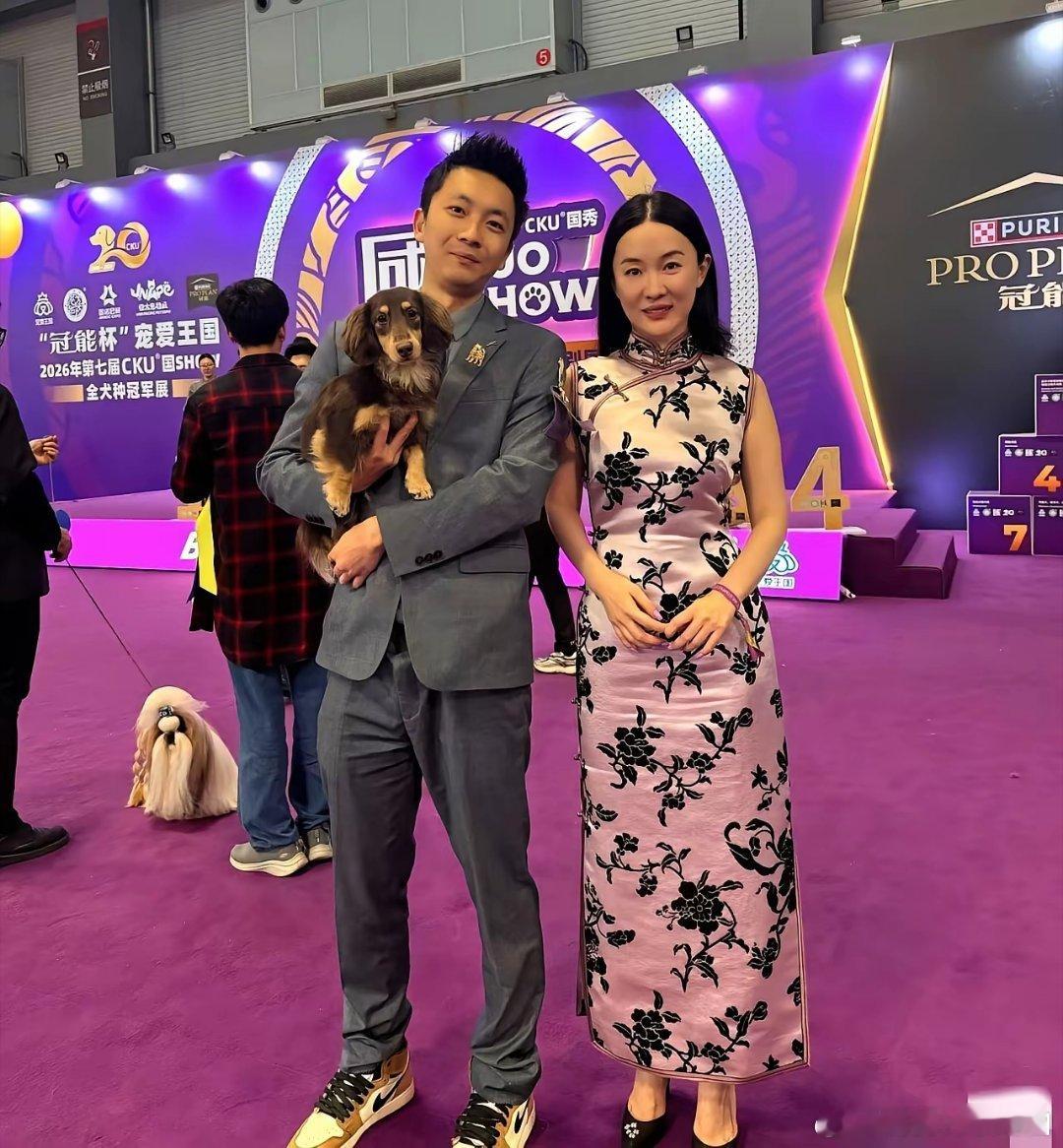 今天刷到个事,挺魔幻的。霍思燕跑去青岛犬展,一天几套旗袍轮番上阵,发型、鞋跟着换