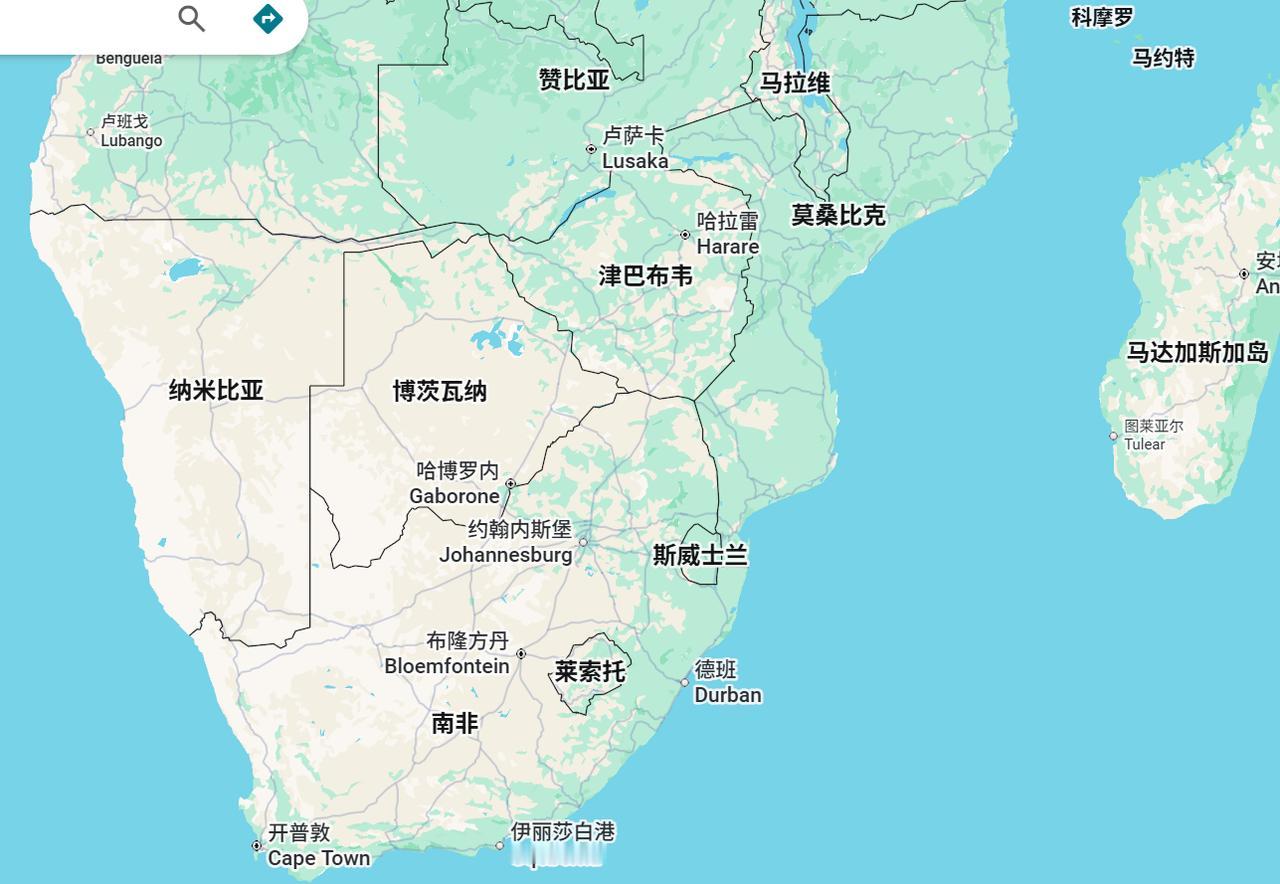 首先,根据台湾方面透露的细节,这次临时取消的原因是与航班有关。从我所截取的南部非洲的地图,也能看出,斯威士兰这个国家并不临海,而是四面被其他国家所包围。所以赖的班机想要进入斯威士兰,就必须借由其他国家的领空,而这些国家无一例外,都是目前中国的正式邦交国。