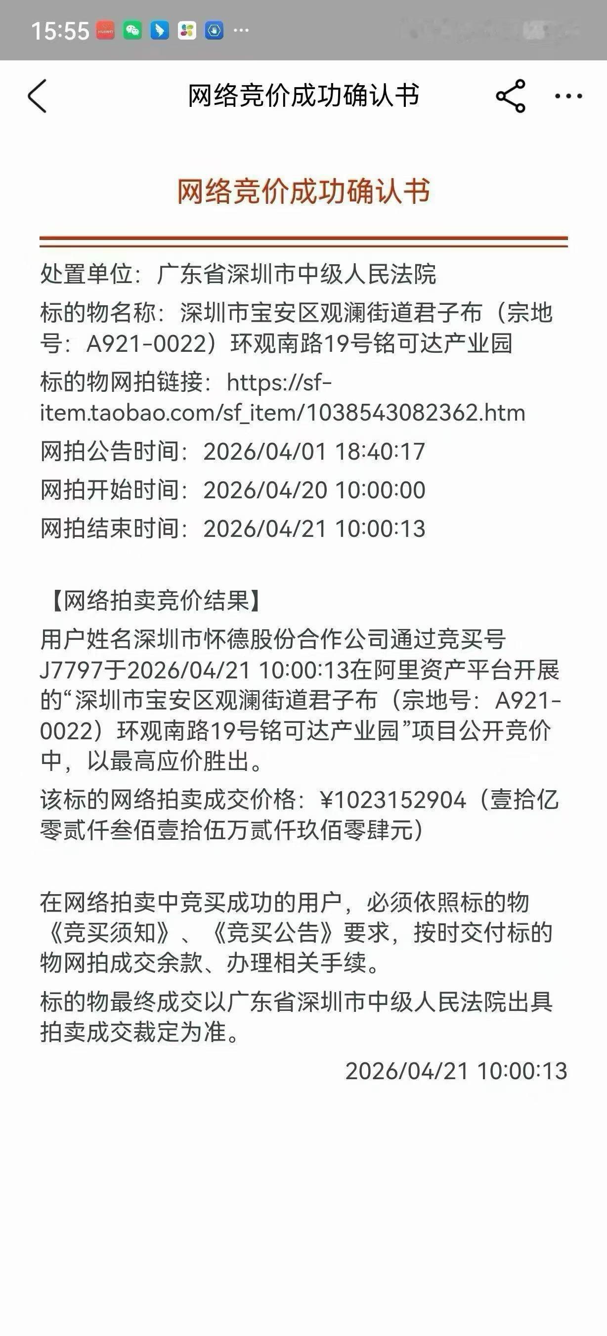 10个亿说买就买!深圳怀德村再次刷新了我们对“收租”的认知。 近日,怀德股份合