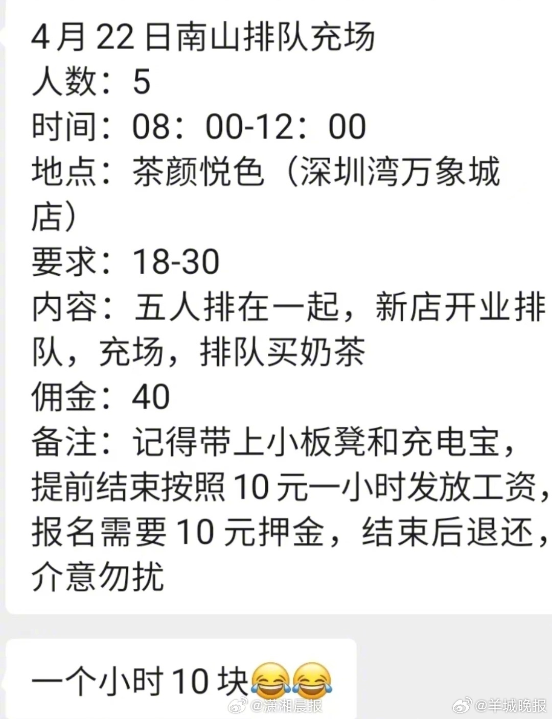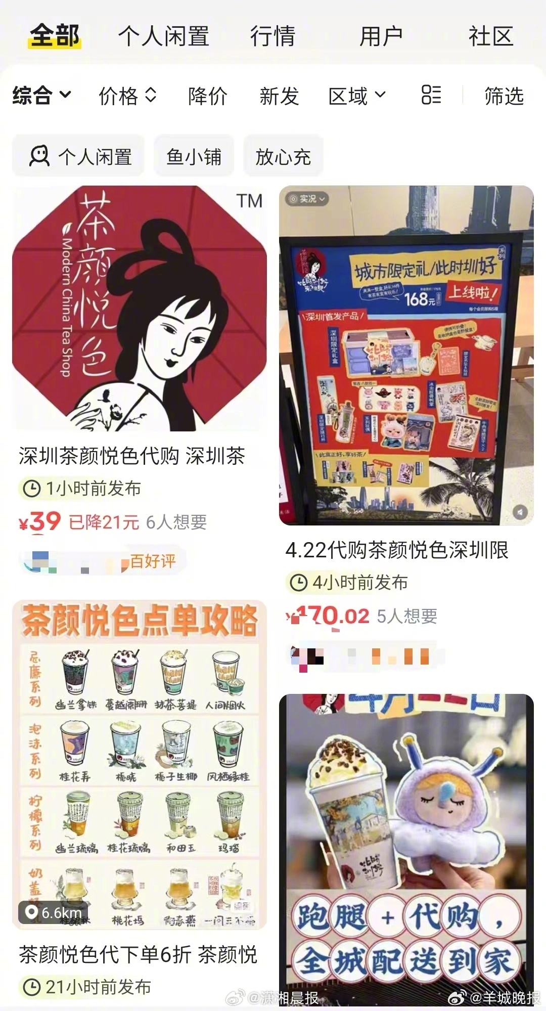 【#茶颜悦色落地深圳黄牛每杯卖88元#,品牌回应:将采取措施抵制“黄牛”,如果现场情况紧张或失控,将会协同报警处理】#茶颜悦色将采取措施抵制黄牛# 4月21日,茶颜悦色官方发文预告4月22日深圳两家茶颜新店同时开业。记者注意到,社交平台上已经有大量关于“代购、代跑腿”的内容。除了有当地顾客个人自发代购外,还有大量“黄牛”加入其中。