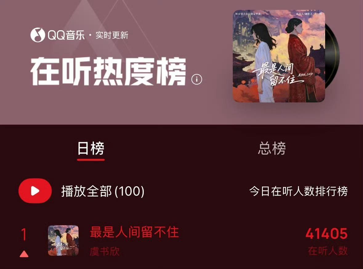 虞书欣新歌 虞书欣新歌《最是人间留不住》空降20分钟收听人数破4w,Q音日榜第☝