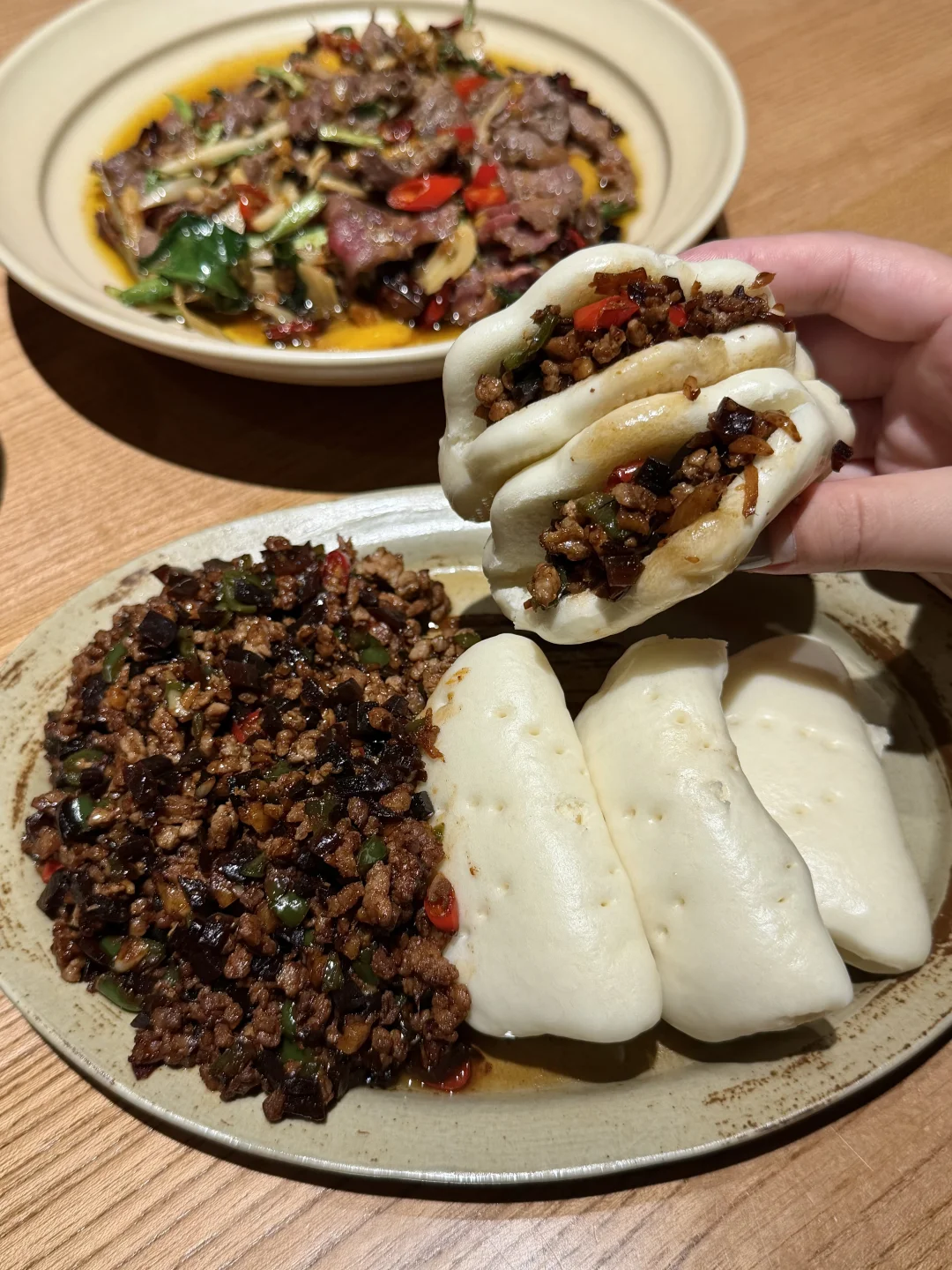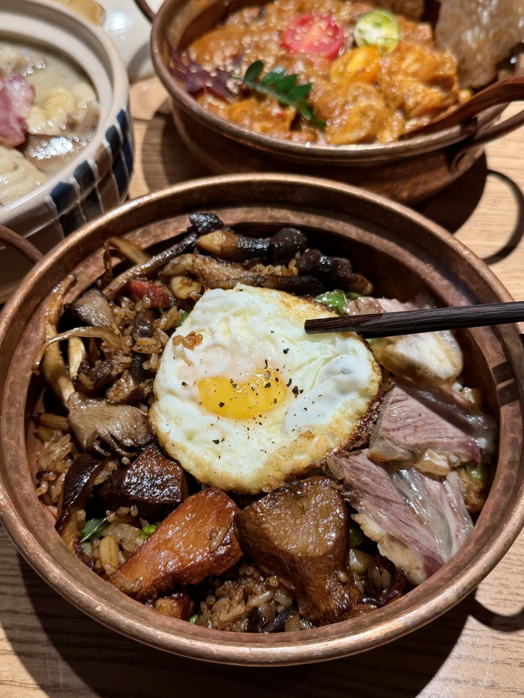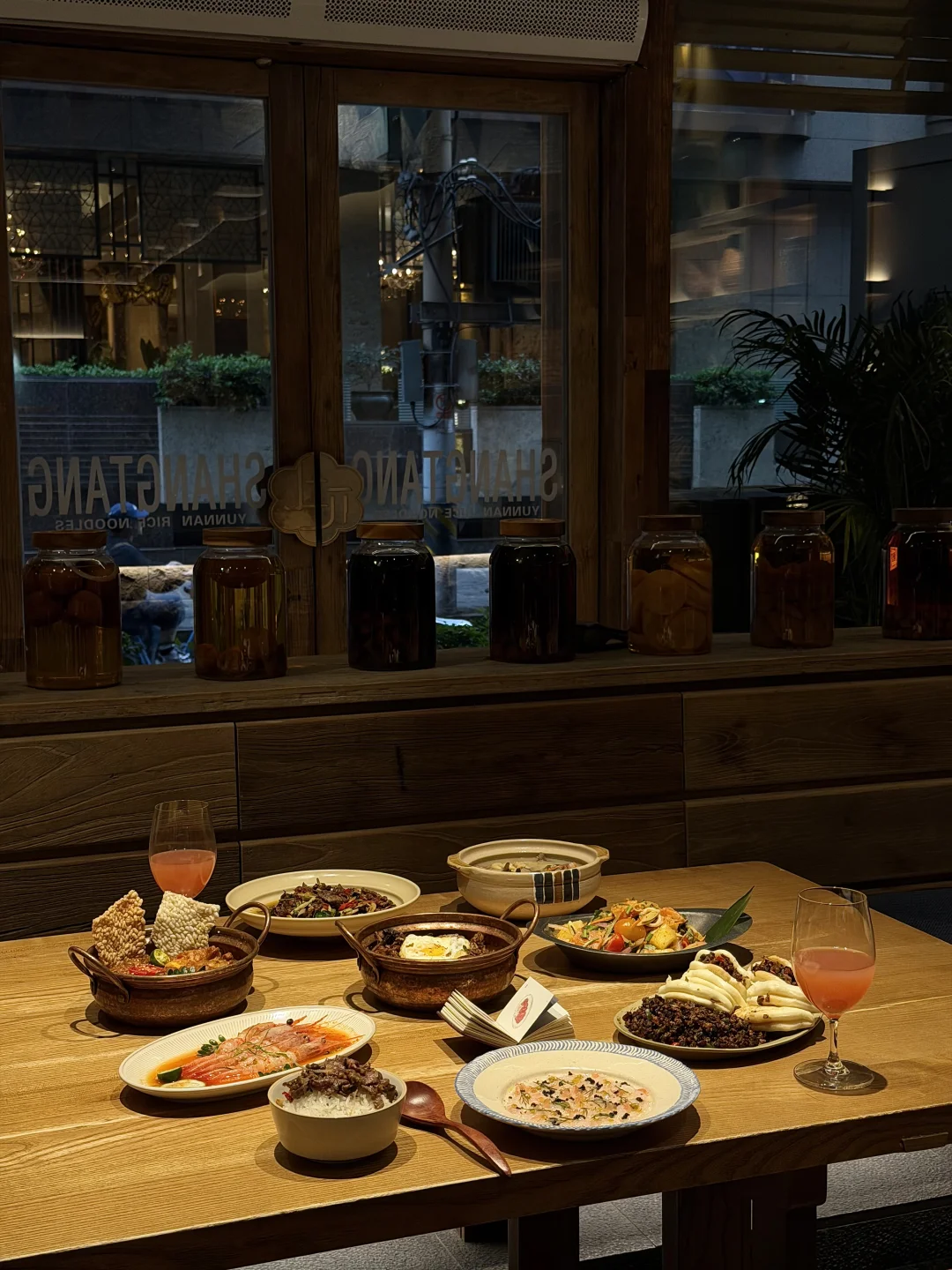 还有野果酸浇汁甜虾、下饭牛肉黑三剁配蒸面饼、牛肝菌&鹿茸菌虫草春笋腌饭……随便点点,每道菜都很有云南味🥹