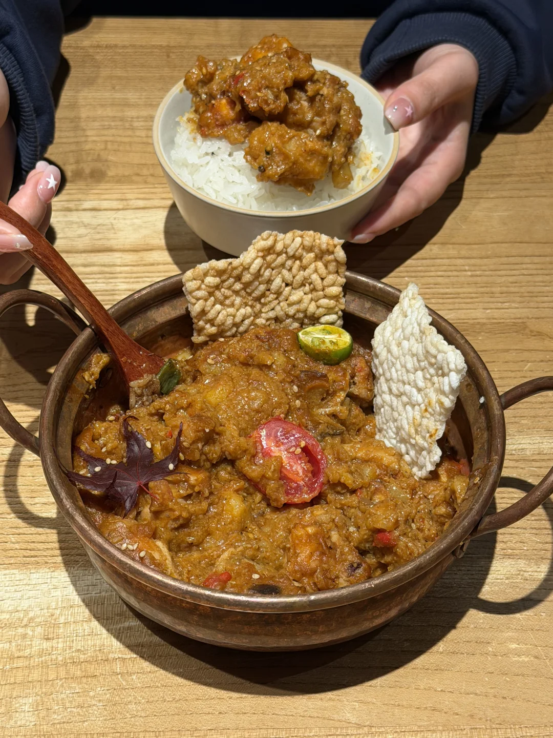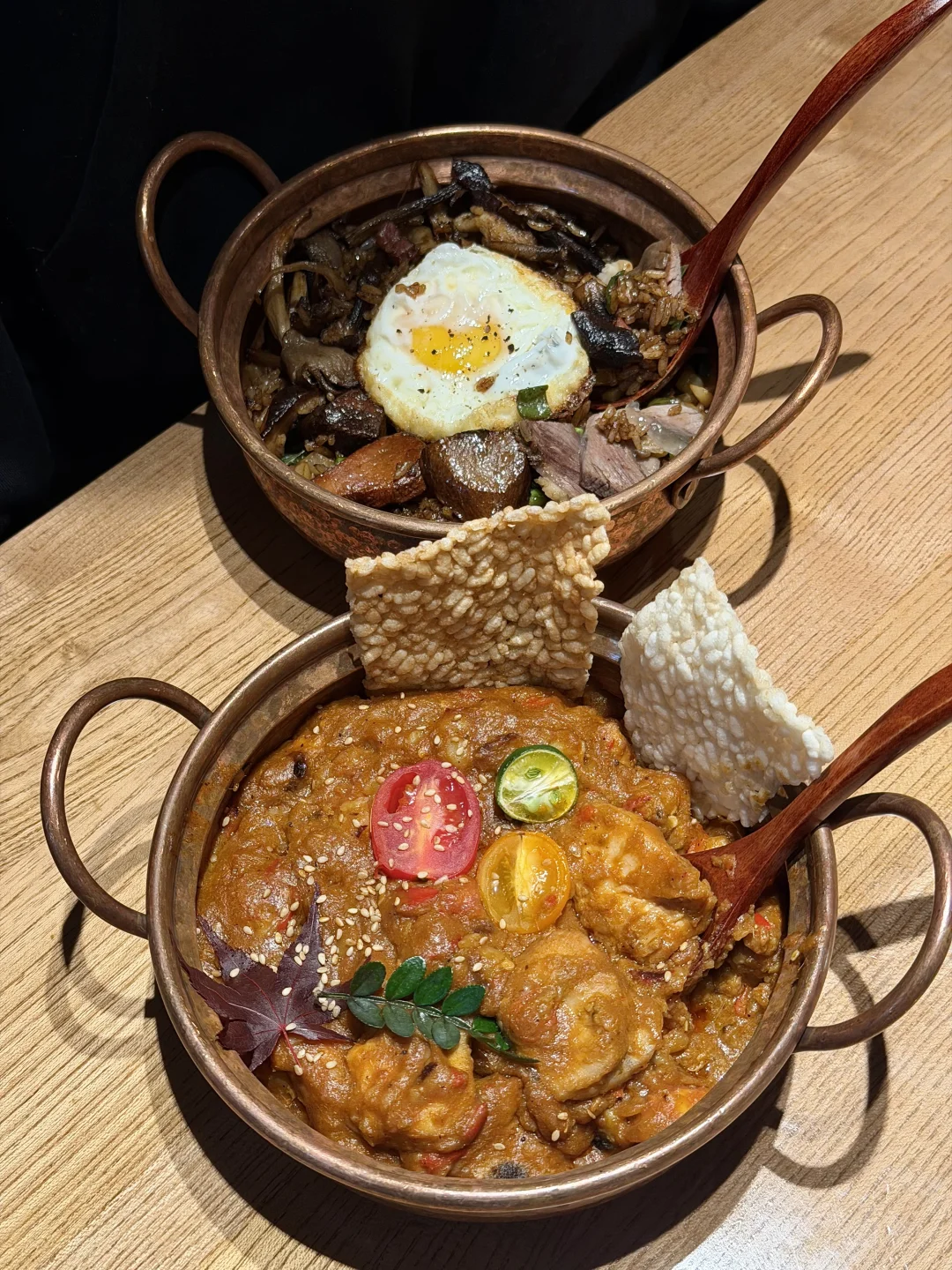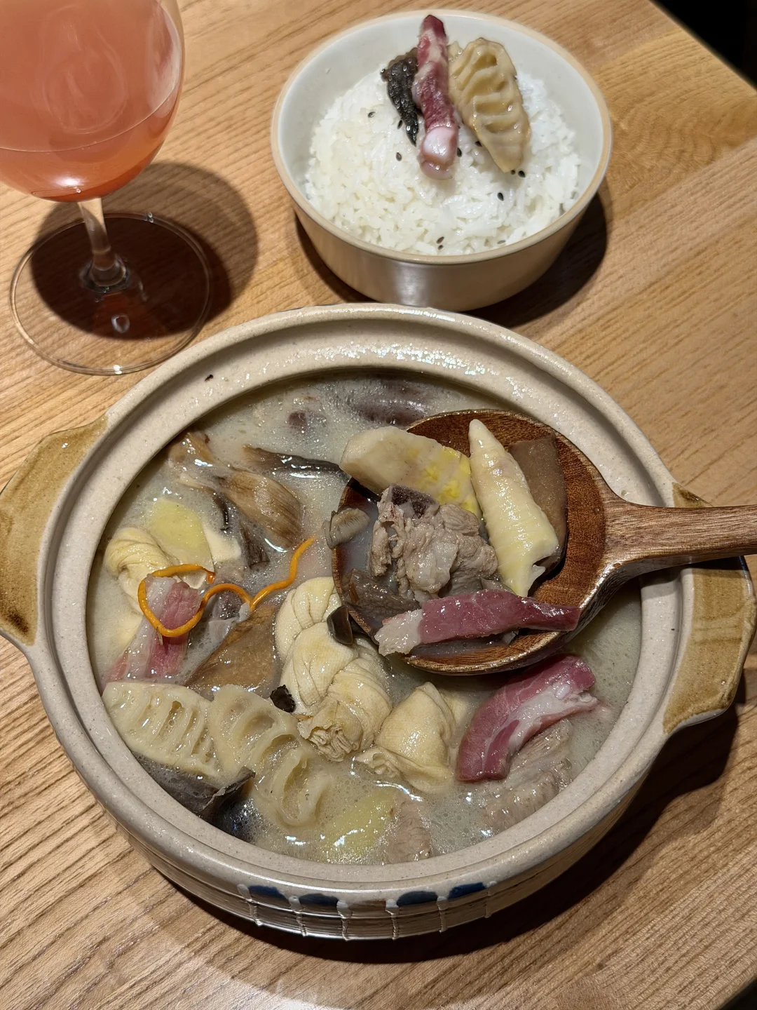 还有野果酸浇汁甜虾、下饭牛肉黑三剁配蒸面饼、牛肝菌&鹿茸菌虫草春笋腌饭……随便点点,每道菜都很有云南味🥹