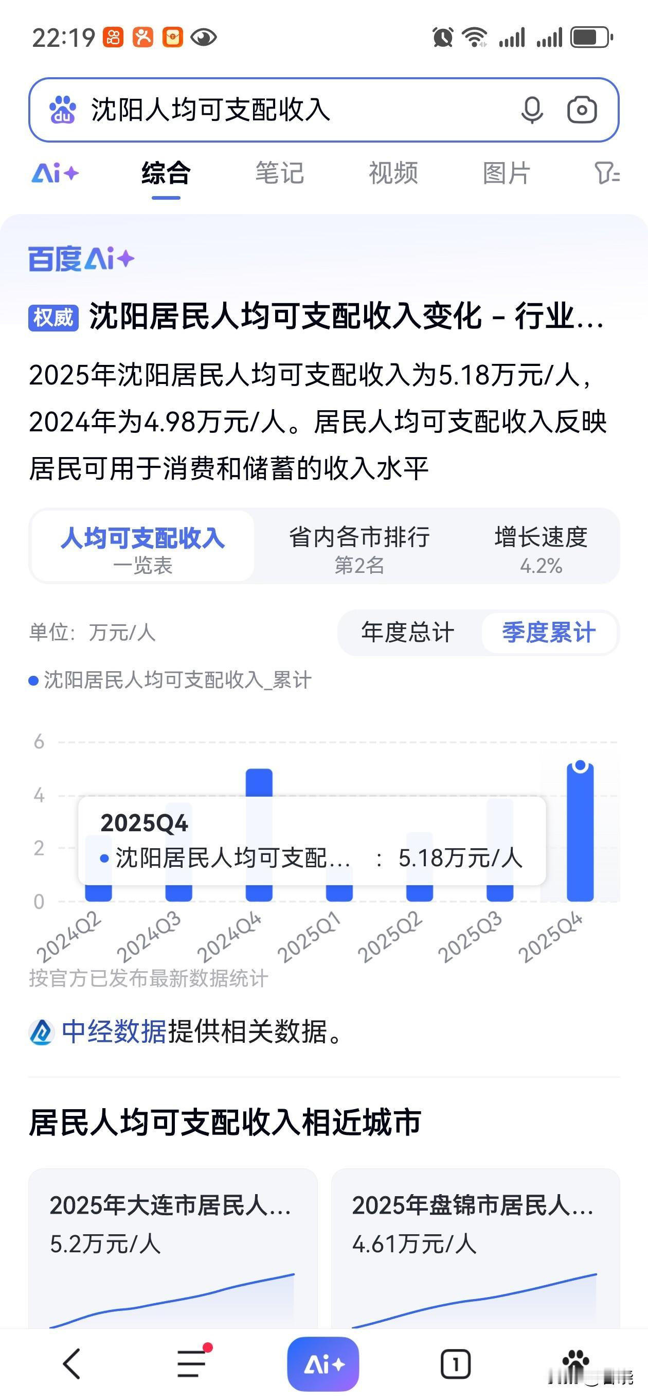 2025年沈阳人均可支配收入5.18万; 2025年大连人均可支配收入5.2万;