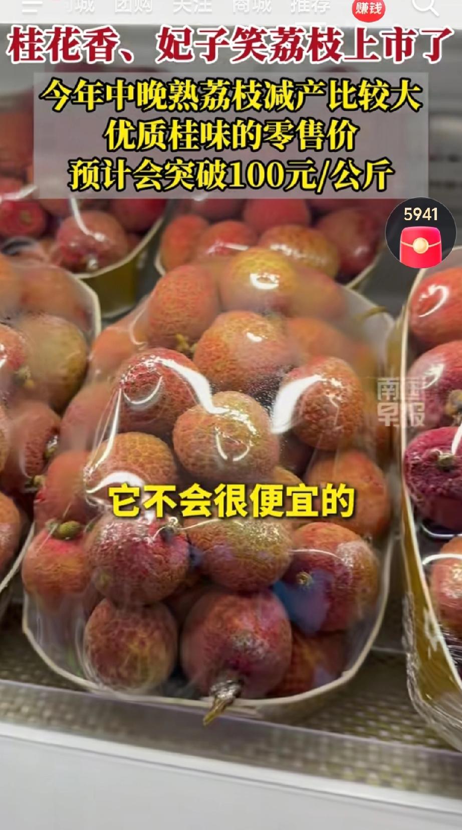 今年中晚熟荔枝(如桂味、糯米糍)减产明显,后续供应或偏紧。早熟品种初期市场价约15-25元/斤,受减产预期影响,中晚熟品种上市后价格可能高于往年。想尝鲜可优先选择妃子笑(酸甜多汁、性价比高),计划囤货或送礼可关注6月中晚熟品种上市初期货源。(来来源于@南国早报 )