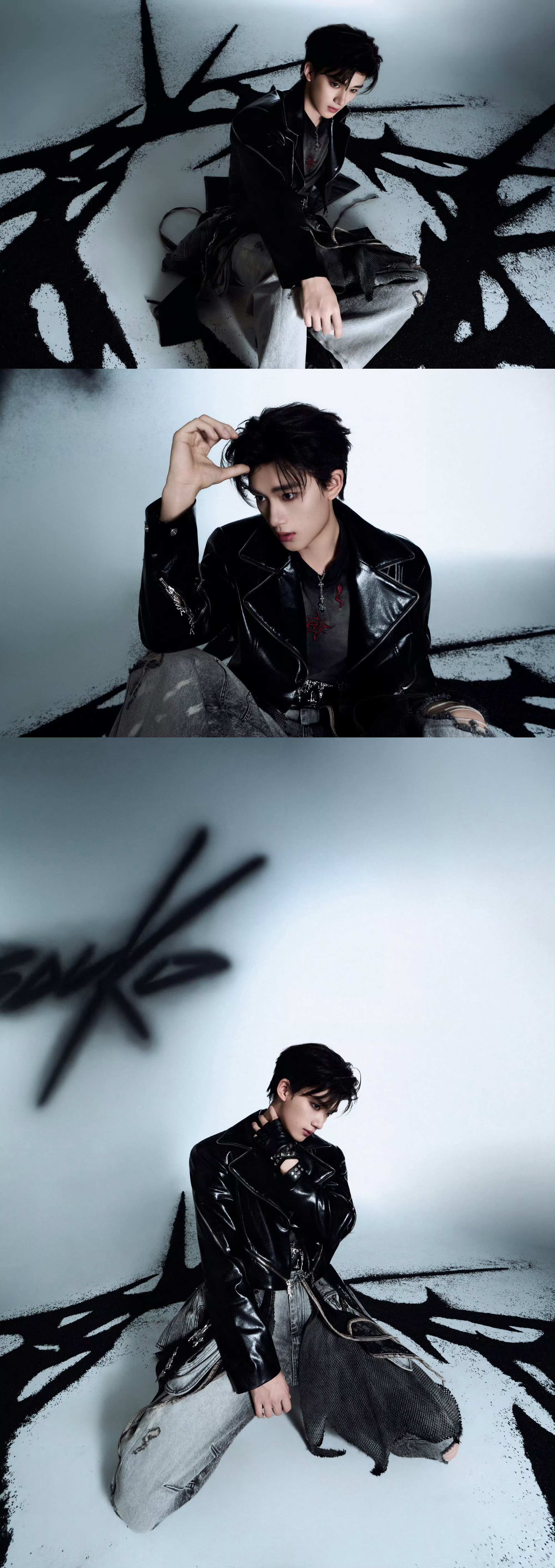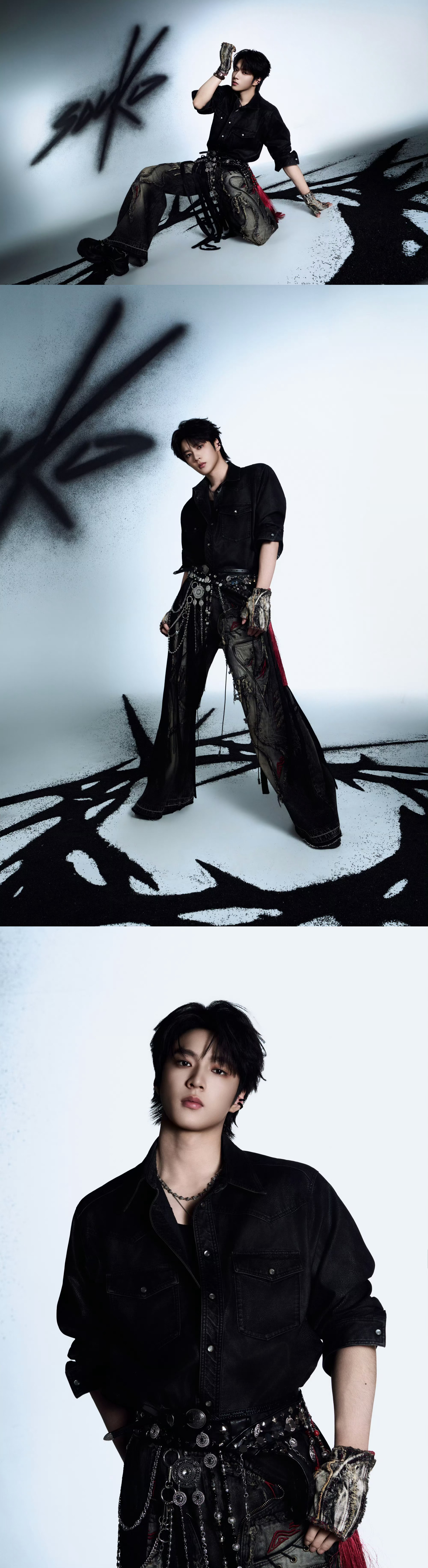 时代少年团 第四张专辑「加冠」——「刺」 Concept Photo 2 造型宣传大片,以"冠冕与尖刺"的哲学隐喻为核心概念,暗黑冷冽的视觉风格,皮革牛仔服饰、金属尖刺配饰… 构建神性与魔性对抗的戏剧张力。🖤💫⛓️ 时代少年团新专辑加冠