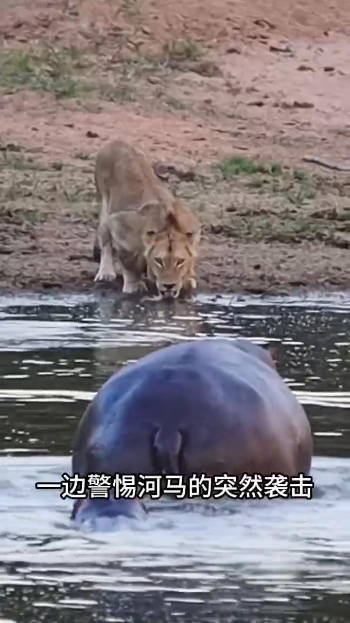 一头狮子正在岸边喝水,狮子有些不安,它一边喝着水,一边警惕河马的突然袭击。就在下一秒,河马突然朝着狮子冲了过去,狮子顿时被吓得退到了岸上。其他的狮子见状,也被吓得连连后退。摄影师乘船给河马拍照,没想到却惹怒了河马。河马张开大嘴朝着摄影师袭来,吓得摄影师飞速逃离河马的领地。