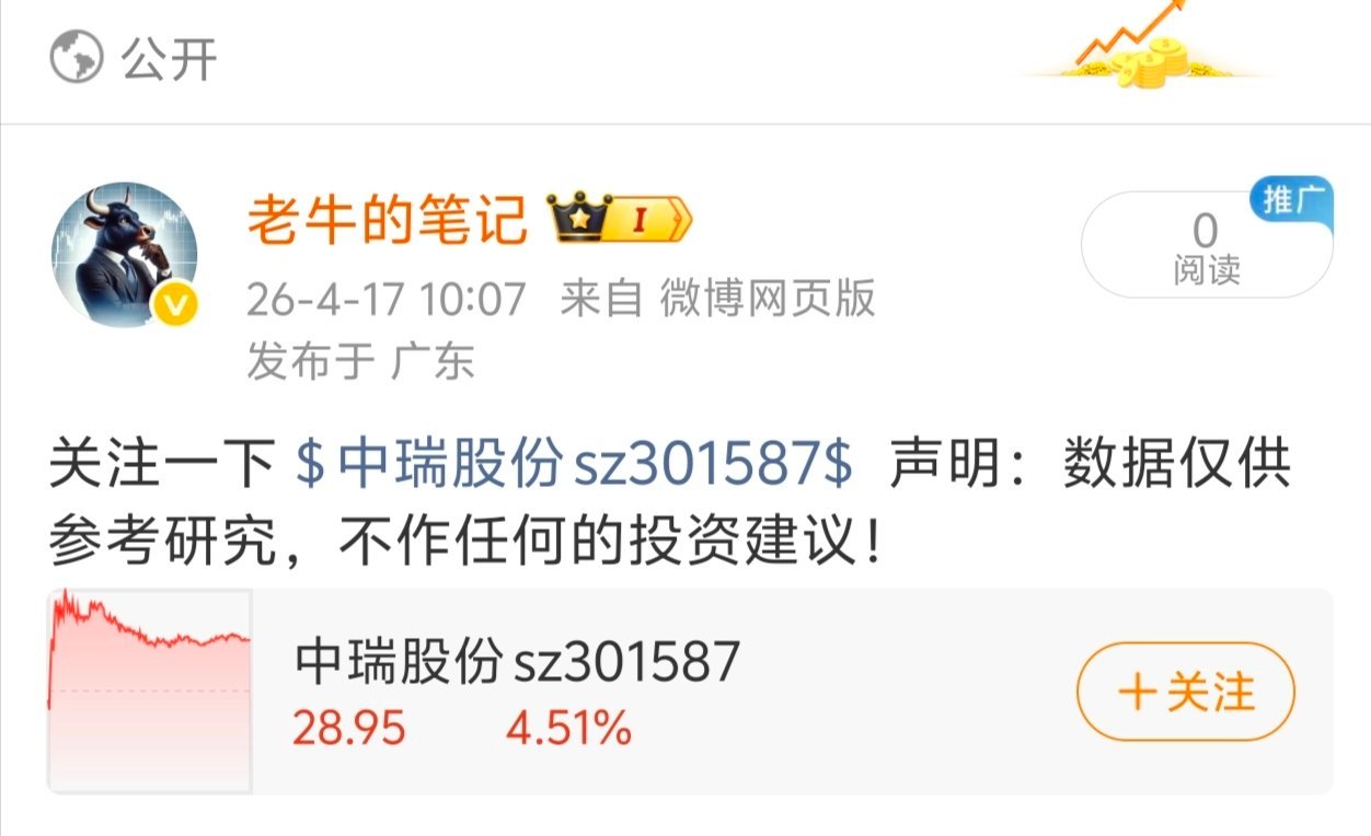 跟着老牛走,喝酒吃肉都会有!喜报:起帆电缆➕中瑞股份➕卓胜微!本周已吃~肉!华塑