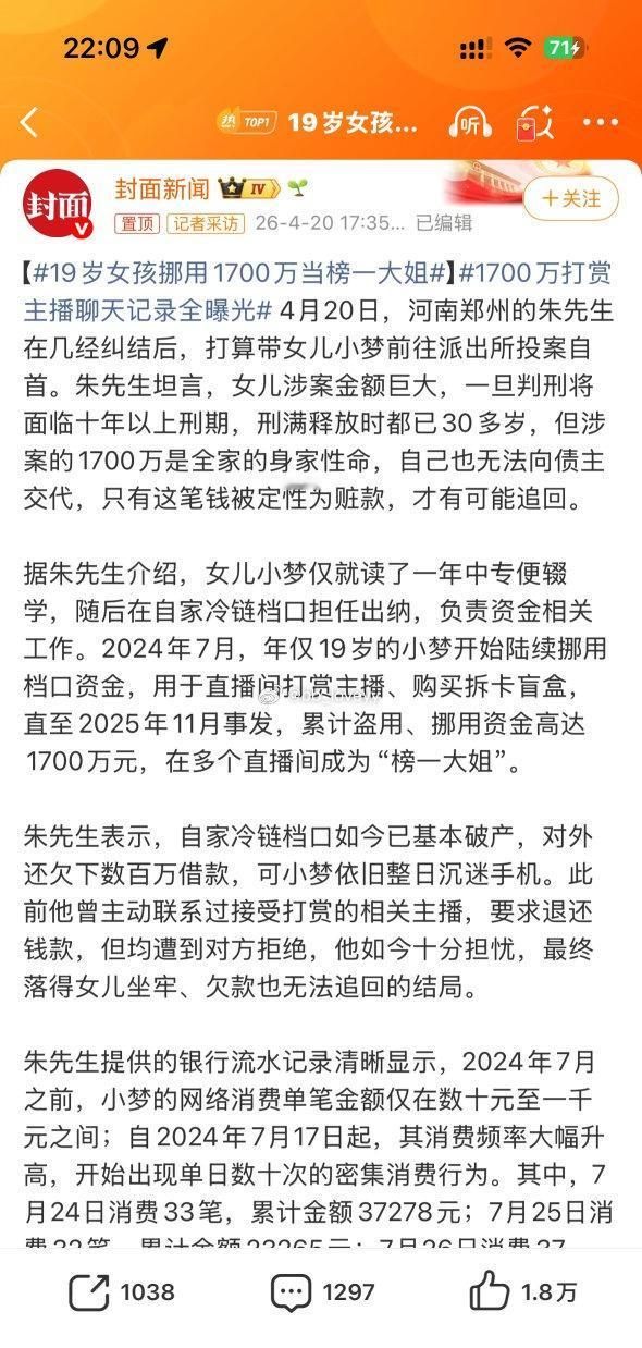 看到她中专都没读完就辍学了,再加上家里有钱,迷失了自己,没经历过社会的毒打,自己的认知和三观都已经偏离了。认知与财富不匹配,再给她钱照样留不住……