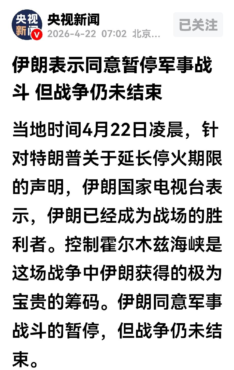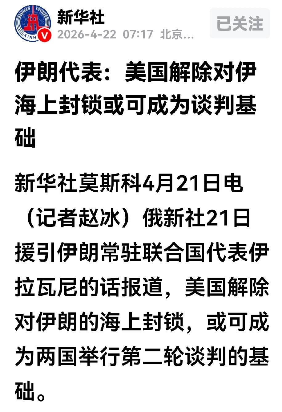 伊朗明确拒绝去伊斯兰堡与美国谈判,关键时刻,特朗普延长停火期限,伊朗同意暂停军事行动并提出伊朗同美国进行谈判的先决条件是美国解除对伊朗的海上封锁!