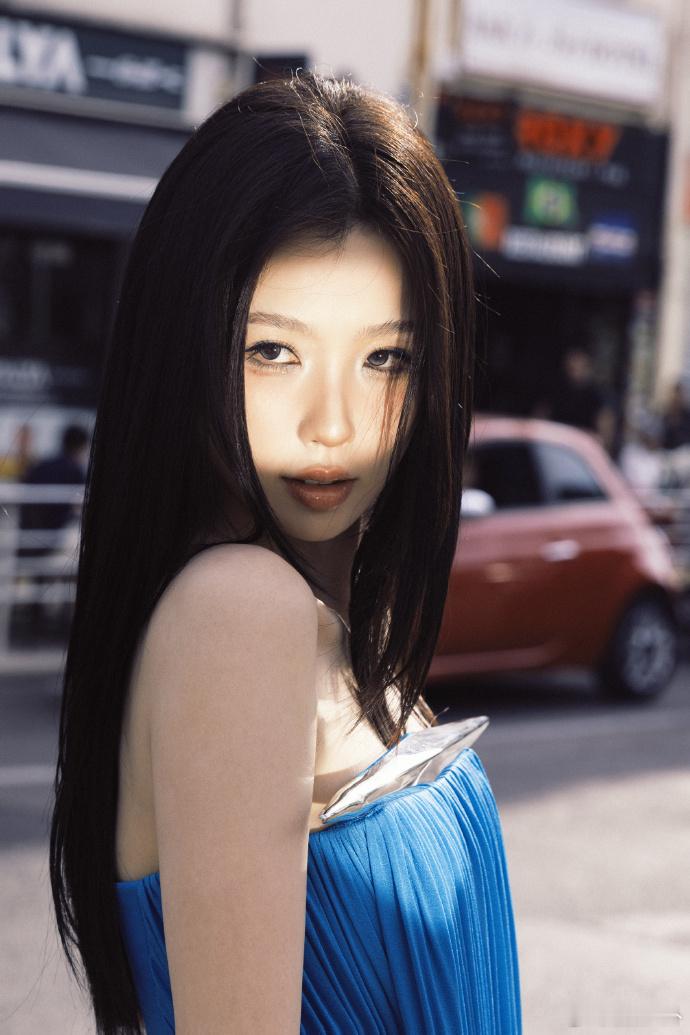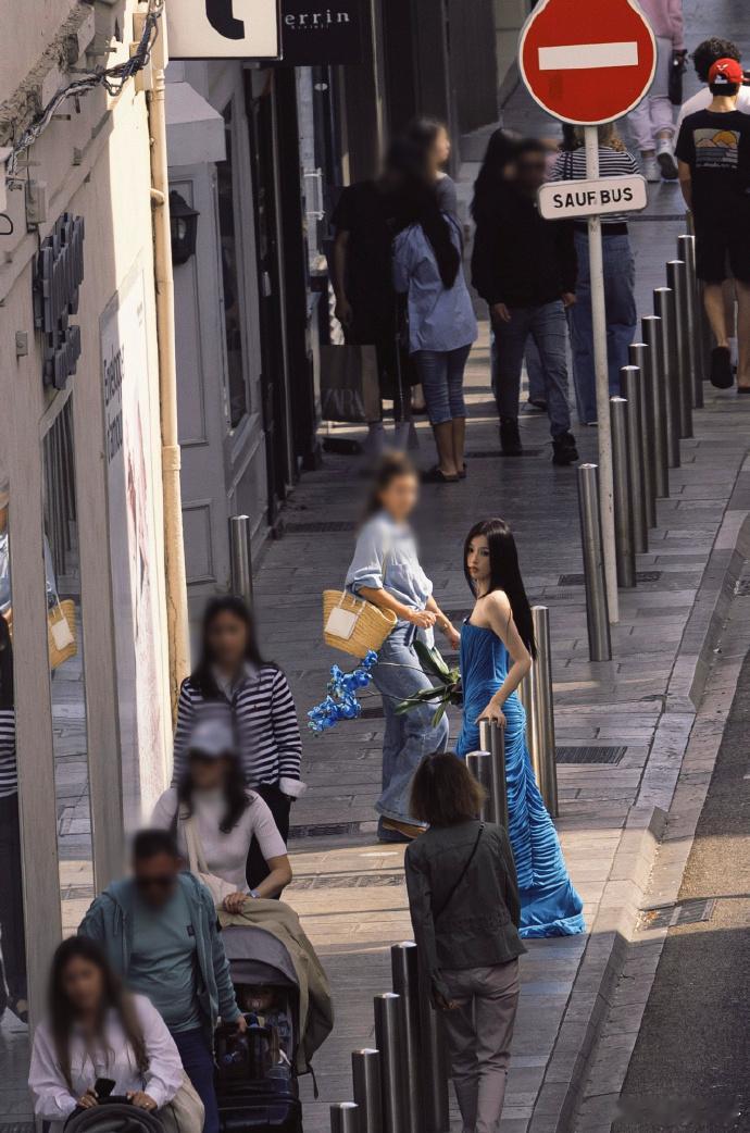 虞书欣戛纳蓝色妖姬造型 南法街头的蓝色妖姬💙虞书欣一身湖蓝长裙,明艳锋芒,浪漫