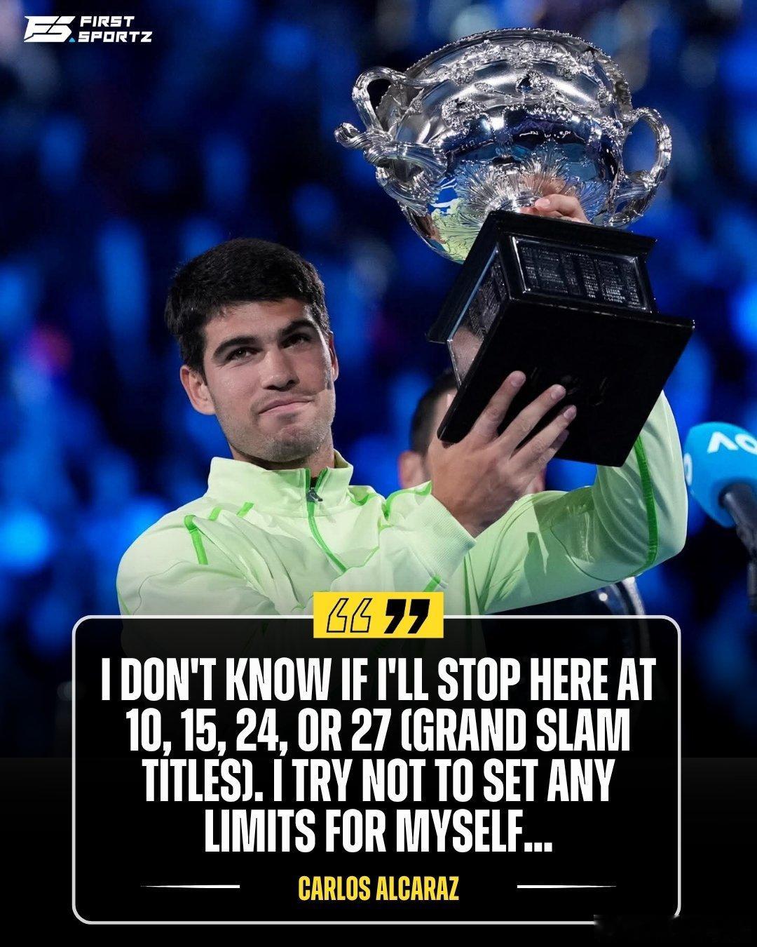 你们觉得阿卡能拿几个大满贯?阿卡:“归根结底,这是一段非常漫长的旅程。我希望我的职业生涯很长,我们会尽最大努力让它如此。我们会看到我能走多远。我不知道我会在10个、15个、24个还是27个时停下脚步。我尽量不为自己的设定任何限制,并继续走我们正在走的这条非常好的道路。我们会看到未来会怎样。”红土撒野季阿尔卡拉斯劳伦斯最佳男运动员阿尔卡拉斯