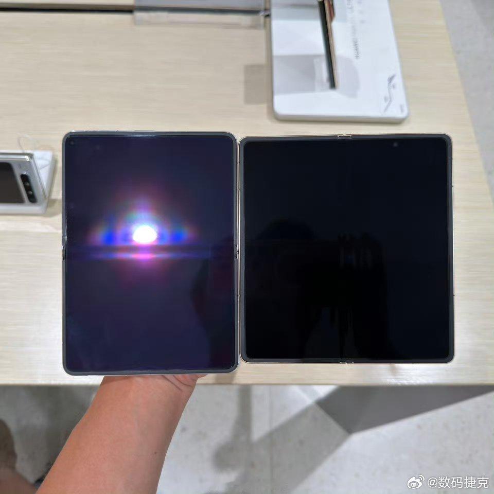 华为发布会有大佬对比了一下华为Pura X Max和荣耀Magic V6,这个Magic V6的至臻黑钻屏真的黑,完全没有任何反射,而且内外屏都是一样的,强光下,你可以看到Pura X还有一定的反射,荣耀这个黑的真纯粹,这屏幕真强。