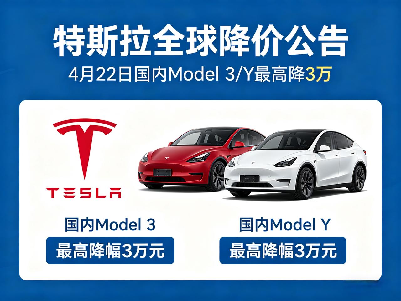🔥 特斯拉全球降价 国内最高降3万 📌 事件 4月22日,特斯拉宣布全球降