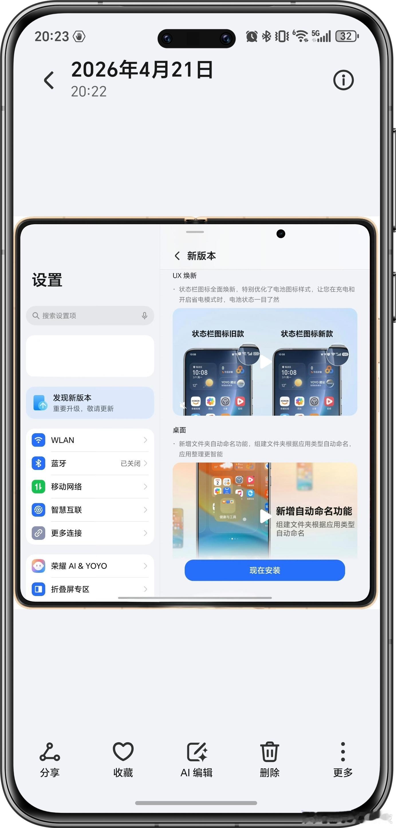 这一次折叠屏手机更新更新内容不少呢。在这里说一些,更多内容大家慢慢体验。