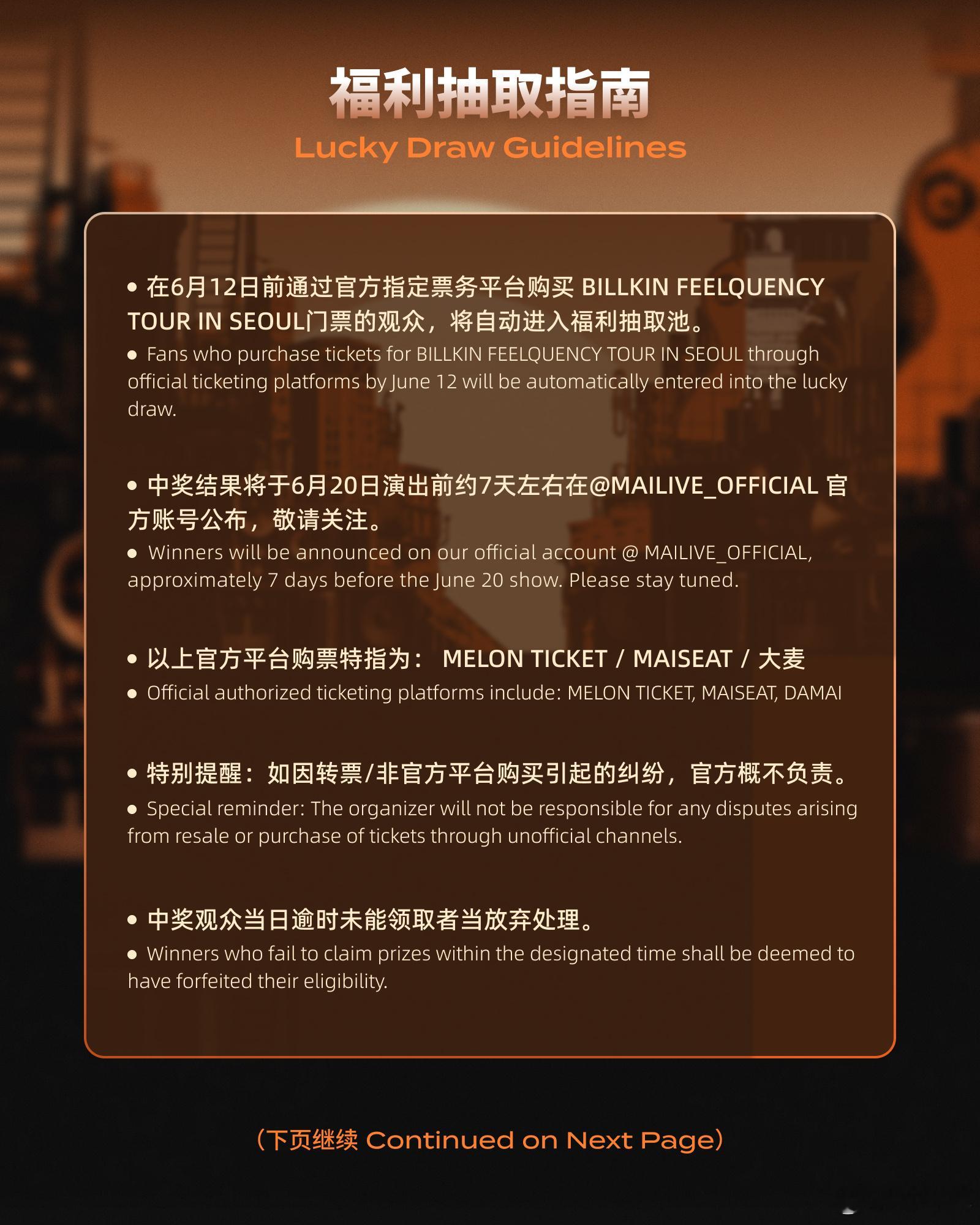 BILLKIN_FEELQUENCY_TOUR_IN_SEOUL演出看MAILIVE买全球演出上MAISEAT 高热度项目预定!预售已罄,正票13:00开抢,BILLKIN首尔场6.20在KINTEX Hall 5等你,MAISEAT和大麦通道,手速快才能和BK同频过节!
