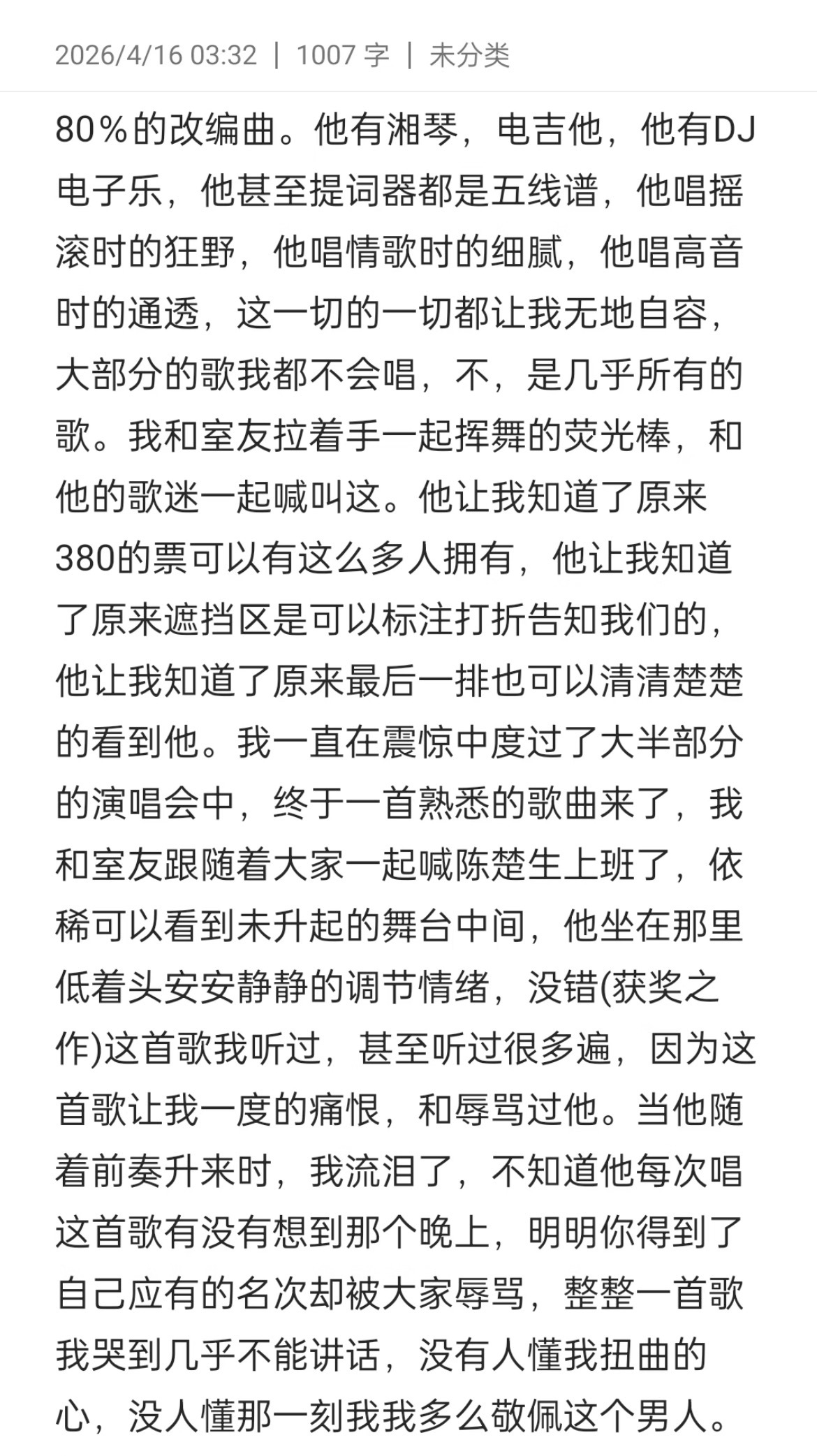 🧱半夜三点写的千字长文——在陈楚生演唱会黑转粉 陈楚生的演唱会不仅可以让粉丝感