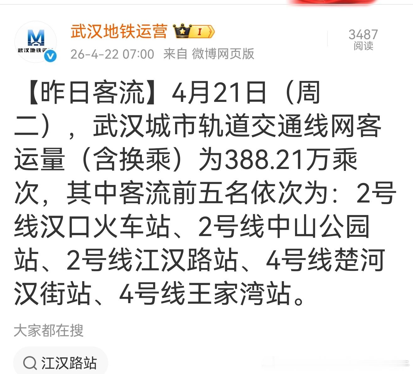 【西安地铁武汉地铁 失守400万】周二西安392.4万,武汉388.21万,双双失守400万,昨日还会有400万吗?