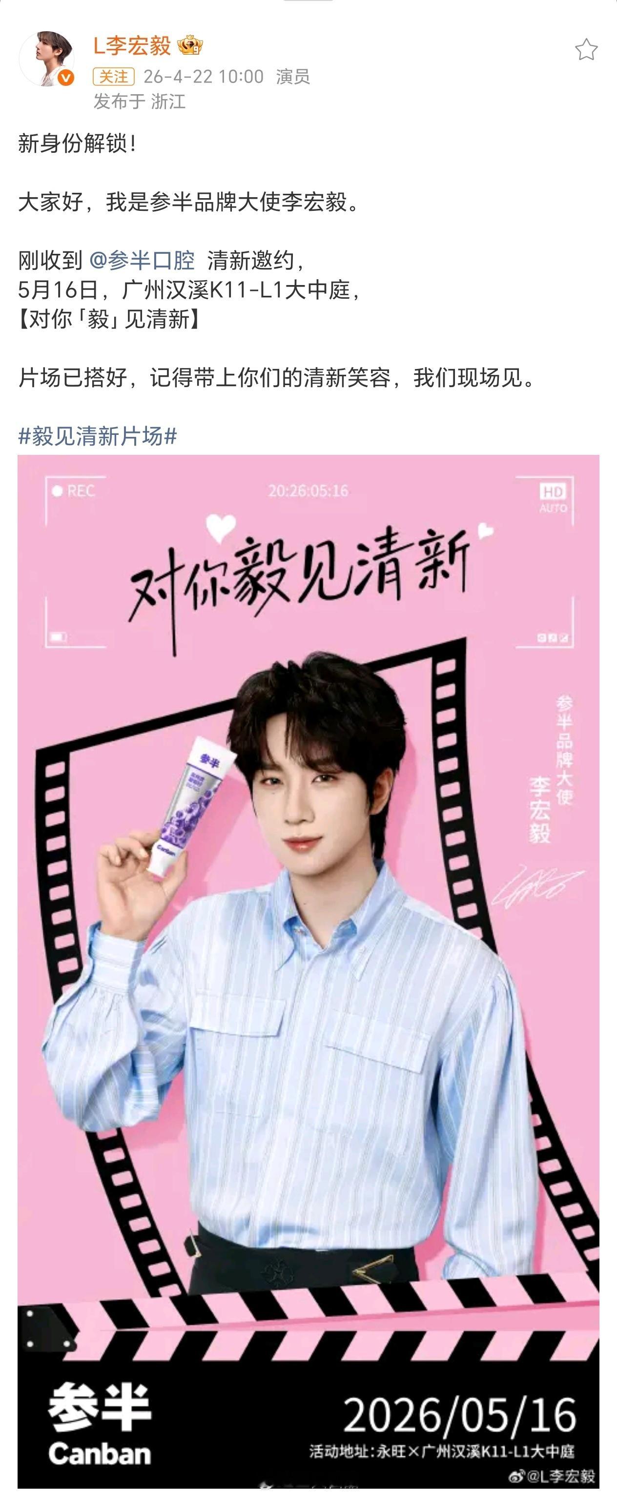 李宏毅官宣参半啦参半品牌大使李宏毅