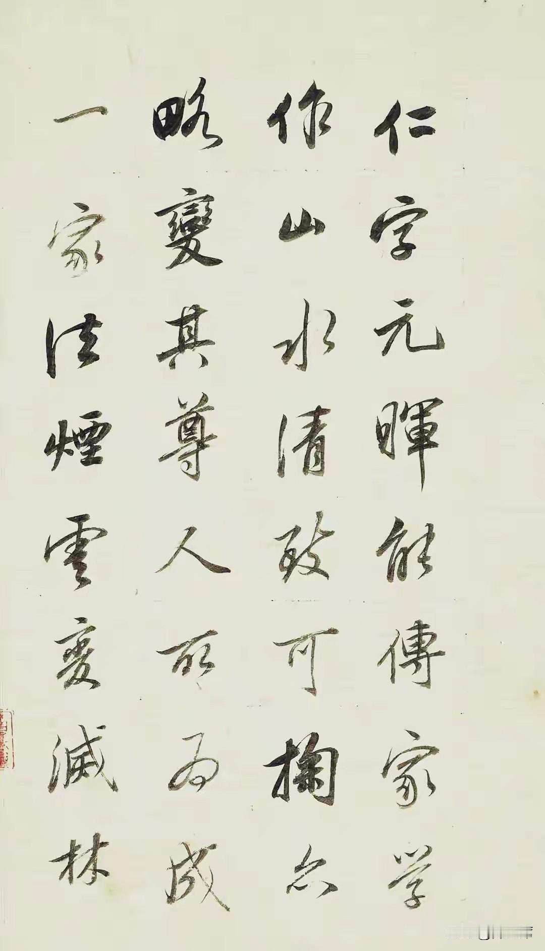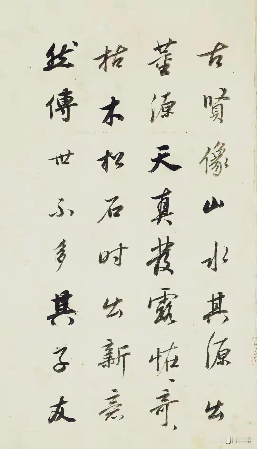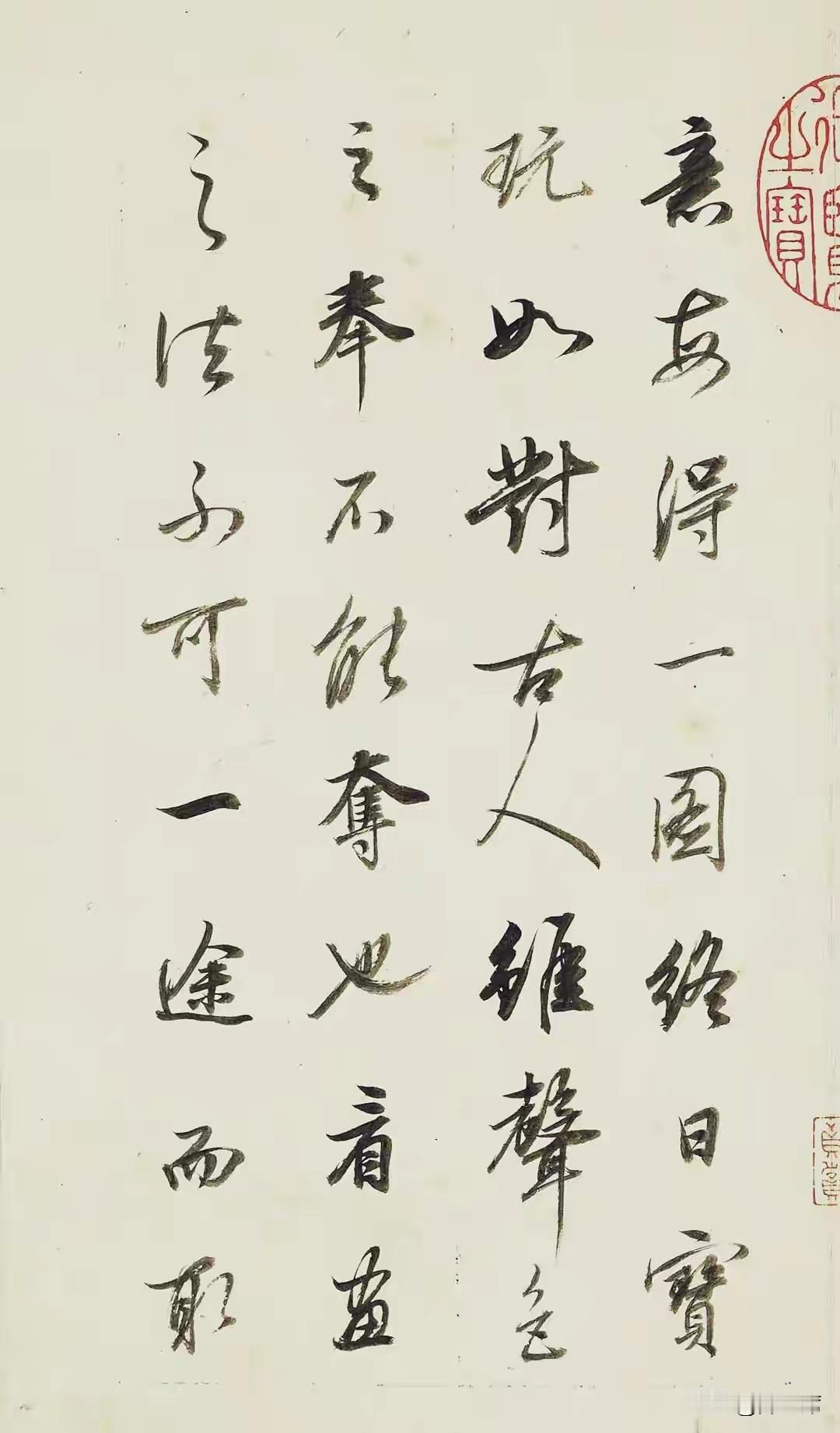 他的书法飘逸空灵,笔画舒展,有晋人的潇洒,又有唐人的严谨。他在《论画册》中的一些章节,笔法轻盈,墨色浓淡相宜。笔画之间的疏密安排十分精妙,给人一种“疏可走马,密不透风”的感觉。