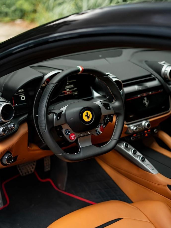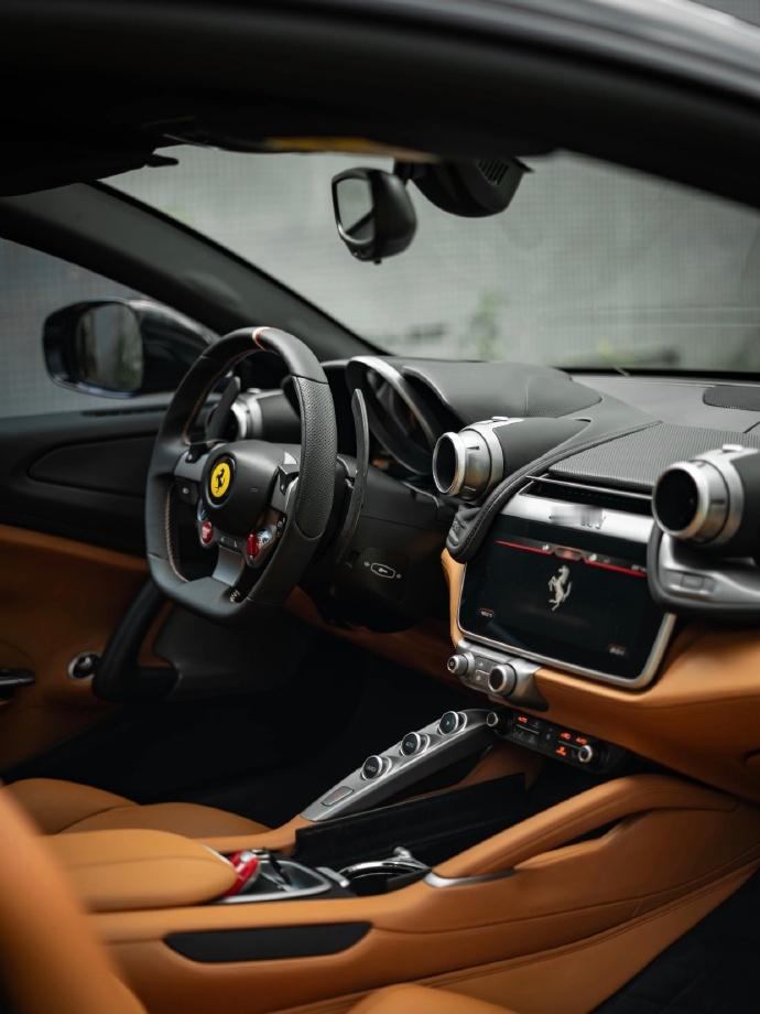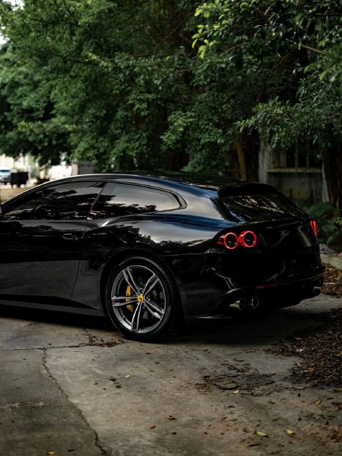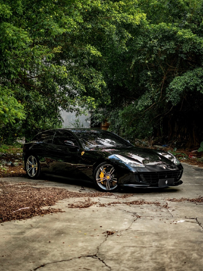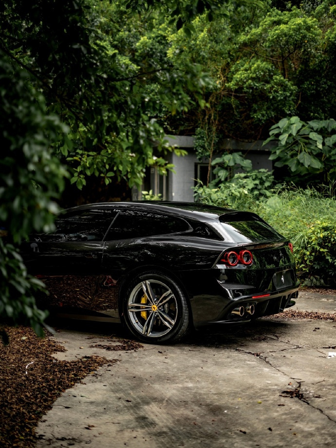 树影摇曳,洒下一片片斑驳陆离的光影。午后的阳光宛如细碎的金子,零零散散地洒落下来。就在这光影交织之处,一匹黑色的 “骏马” 悄然潜伏着 —— 它便是 Ferrari GTC4Lusso V12。汽车视觉