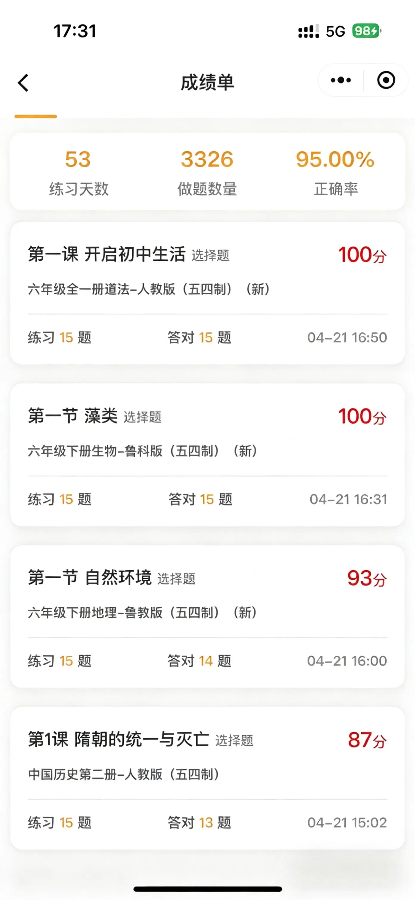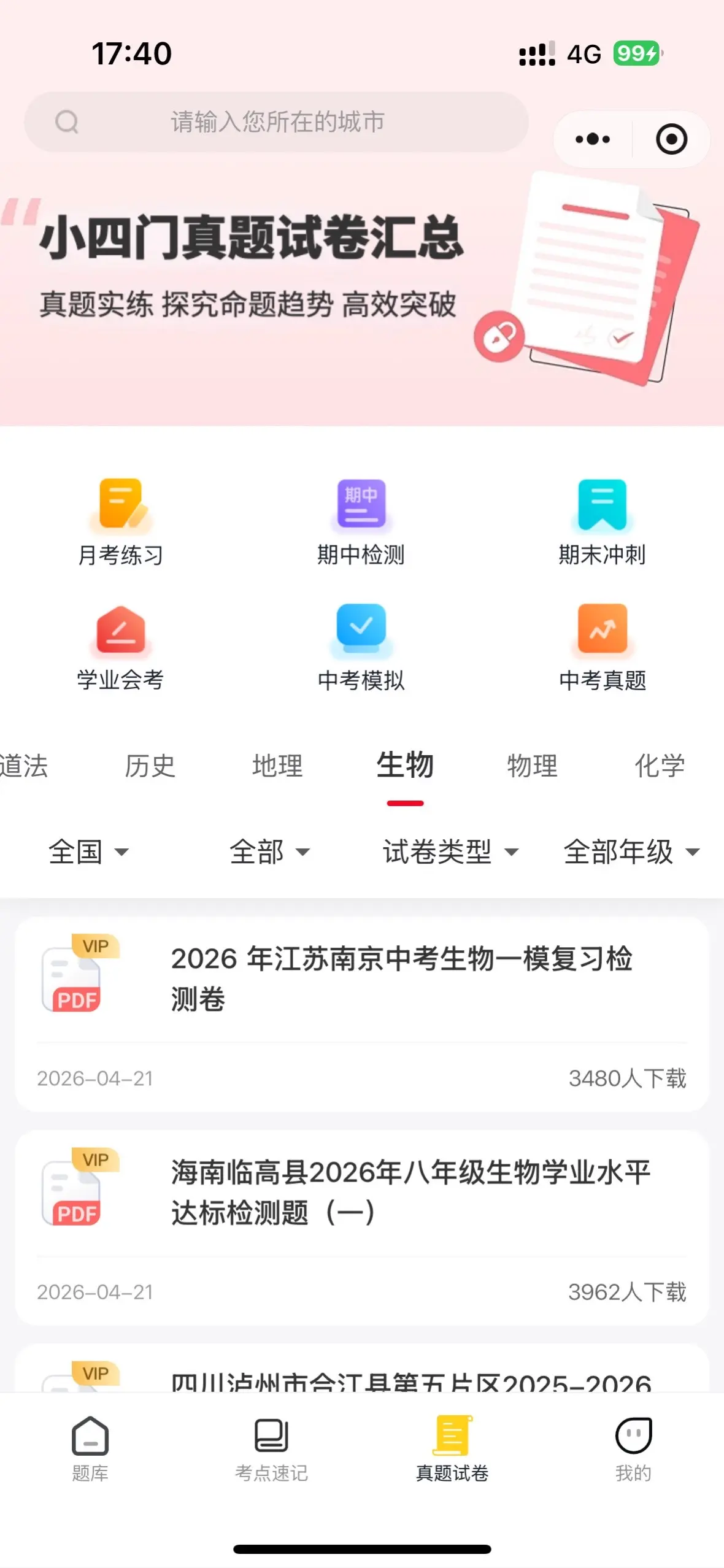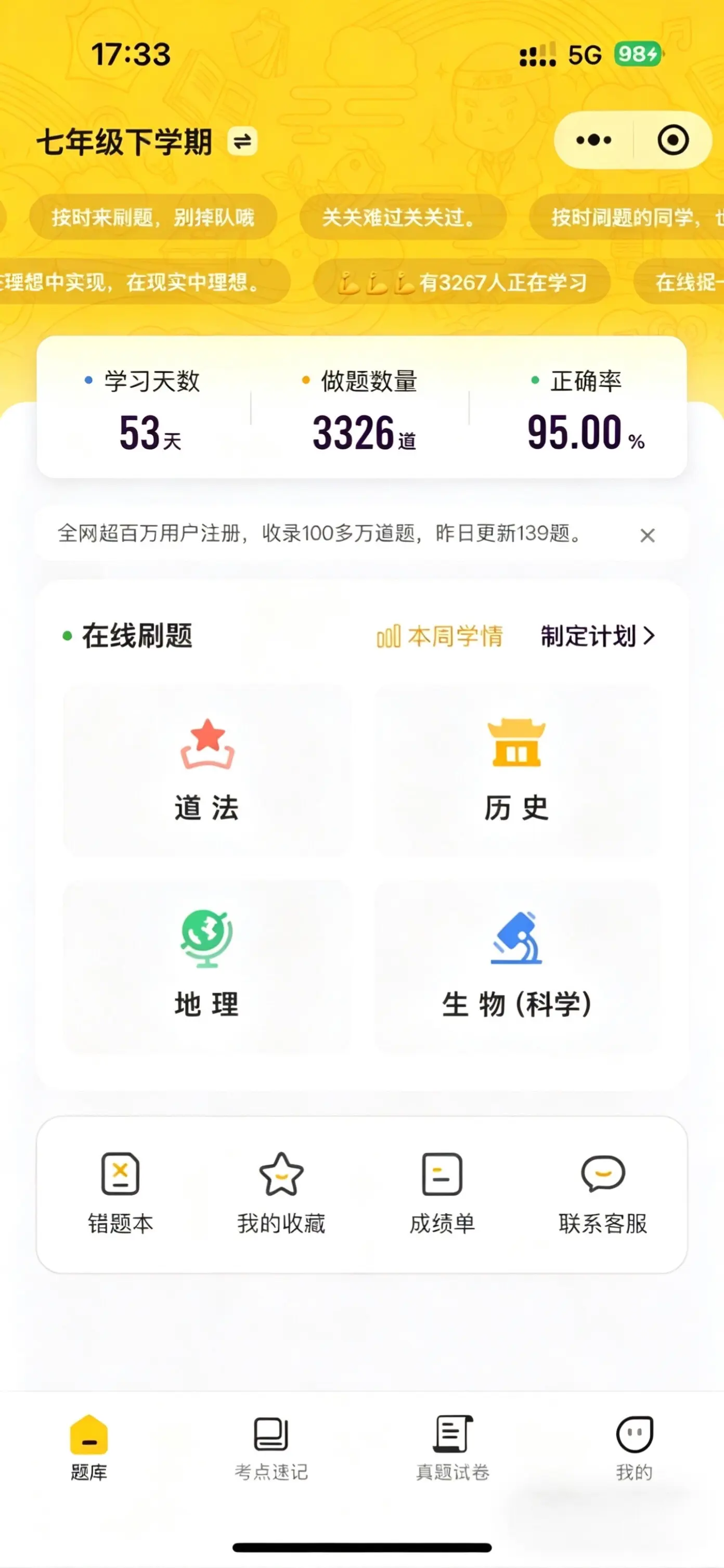 以刷题代替背诵,完全就是为我家女儿这种不爱背小四门 准备的,可以选版本,而且题库是一直更新的,好贴心,还有期未真题卷。