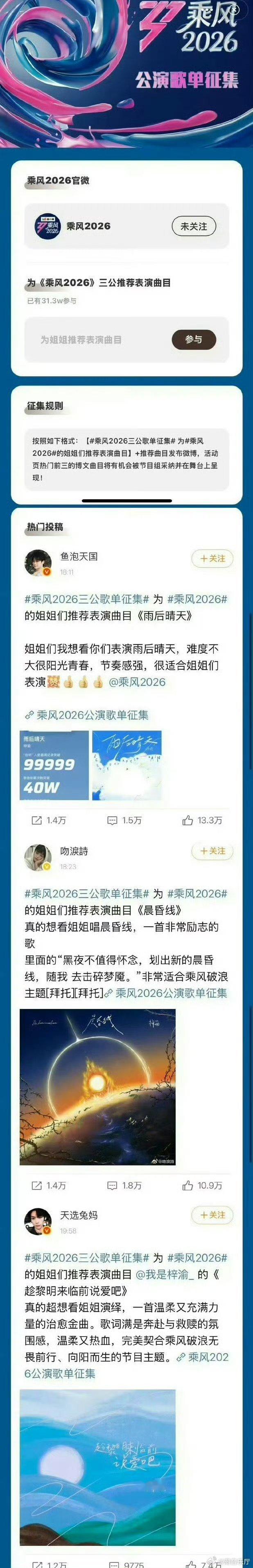 三公歌单征集优化升级,规则更合理透明,用心呈现每一场舞台浪姐三公歌单征集改规则了浪姐三公征集规则