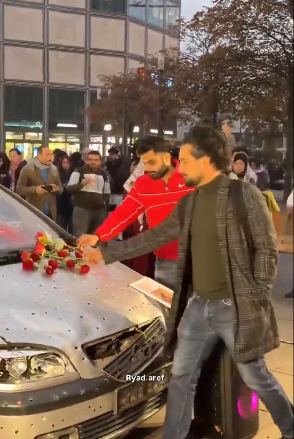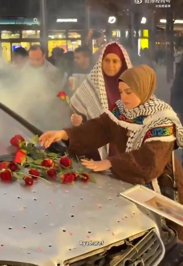 他们站在那辆布满355个弹孔的车前面,站很久,然后把手里的花放上去。