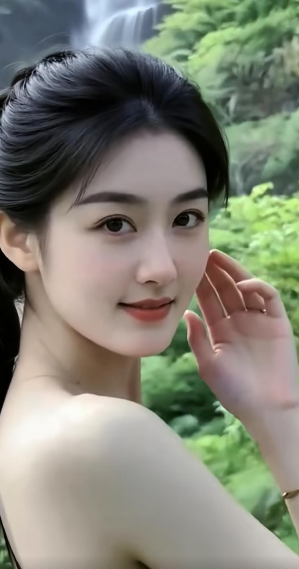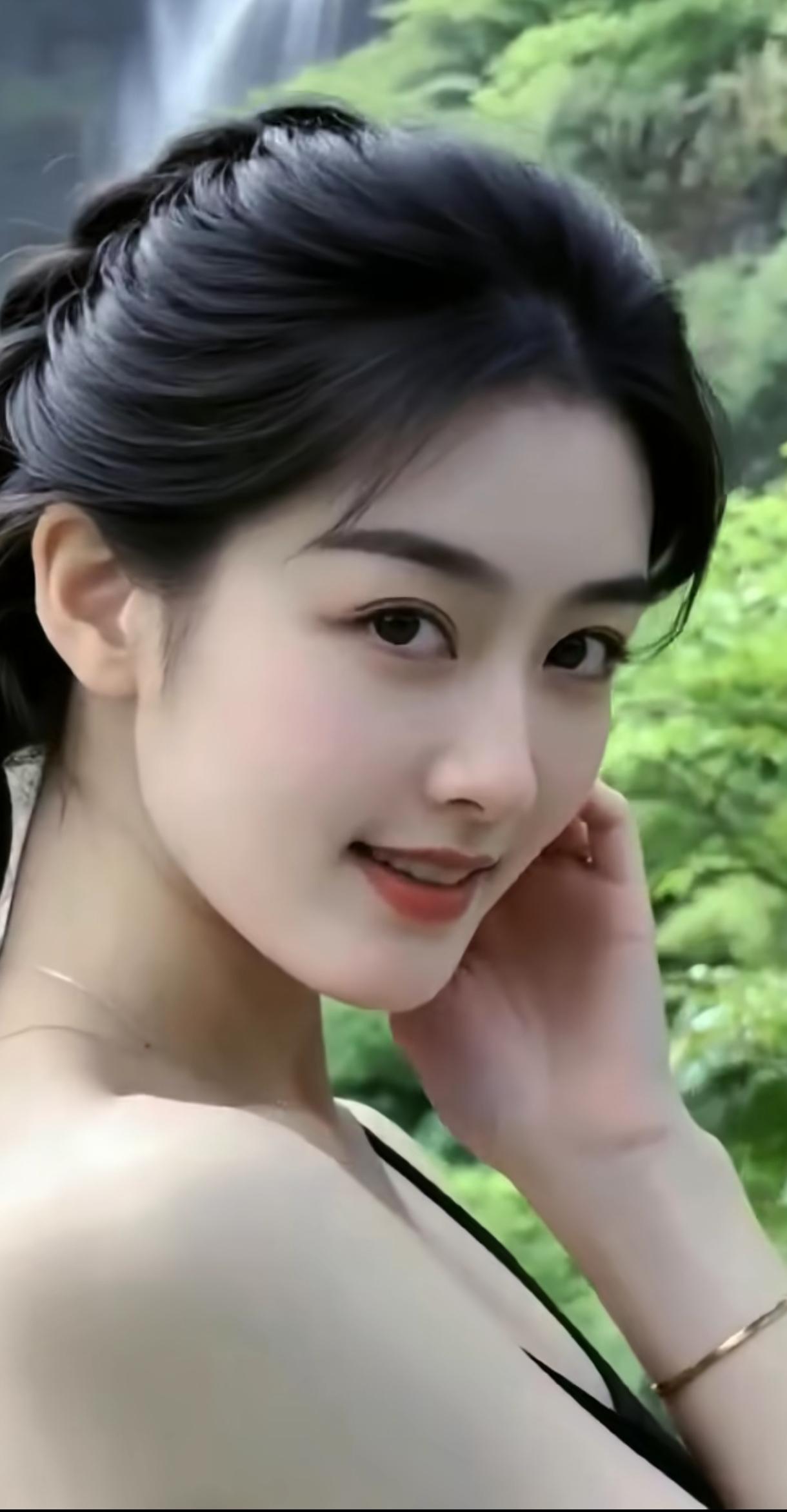 在瀑布旁,她温柔地微笑,仿佛大自然中的一抹阳光。🌿💦🌞分享随手拍的美照 治
