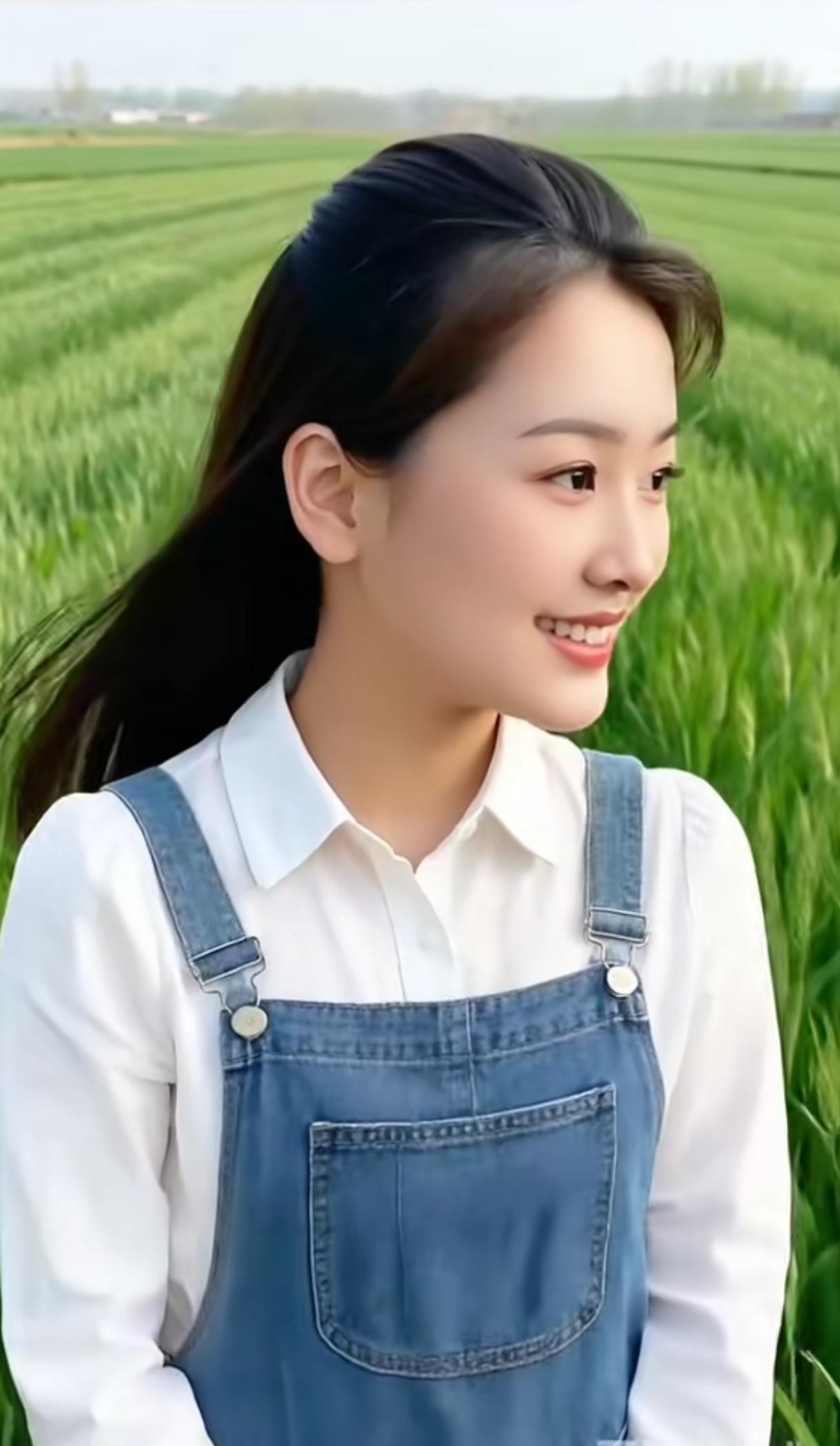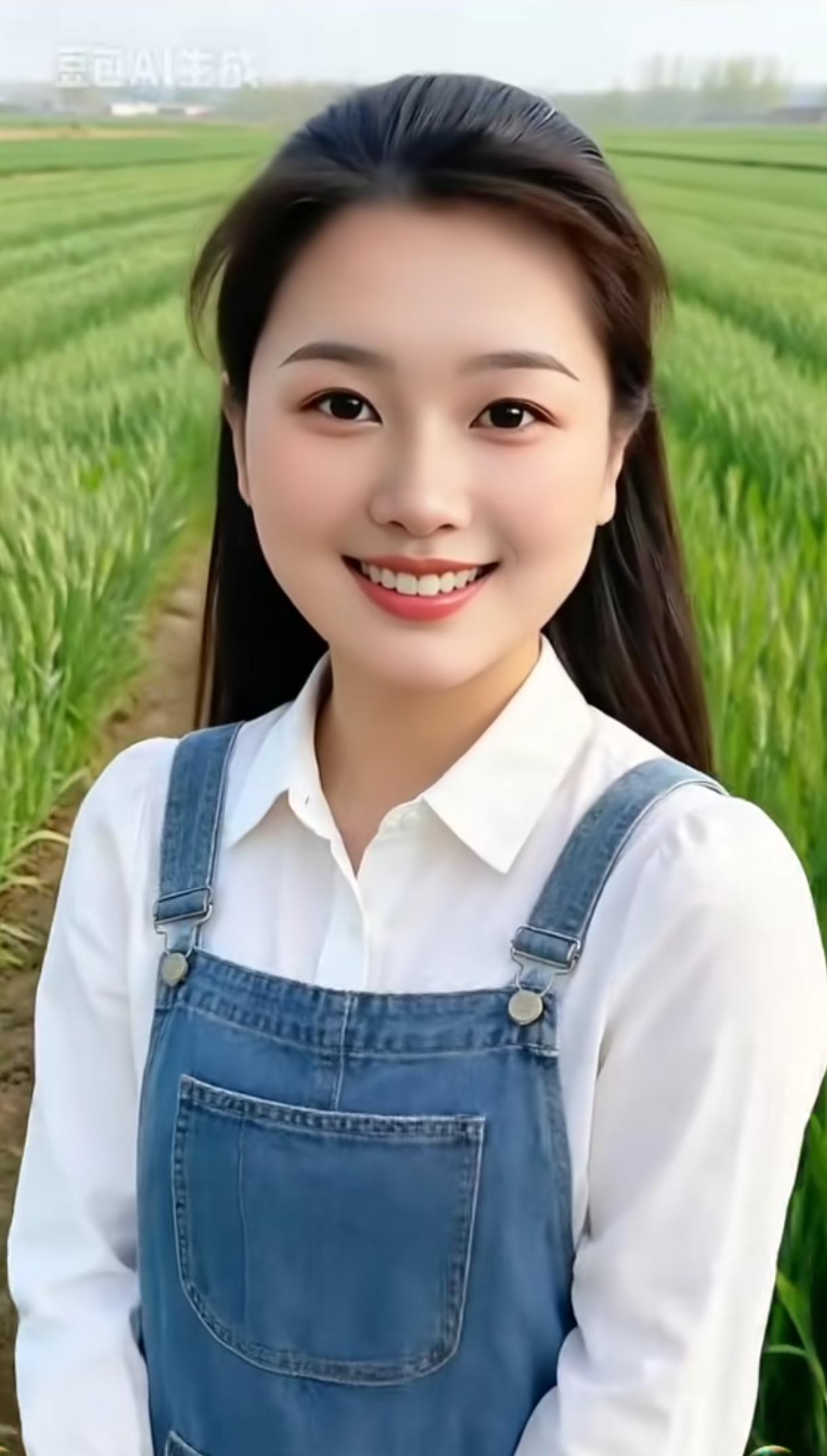 田园少女风,笑容甜美,置身绿意盎然的田野中。手机每天随手拍 淡雅田园照 田园丽人